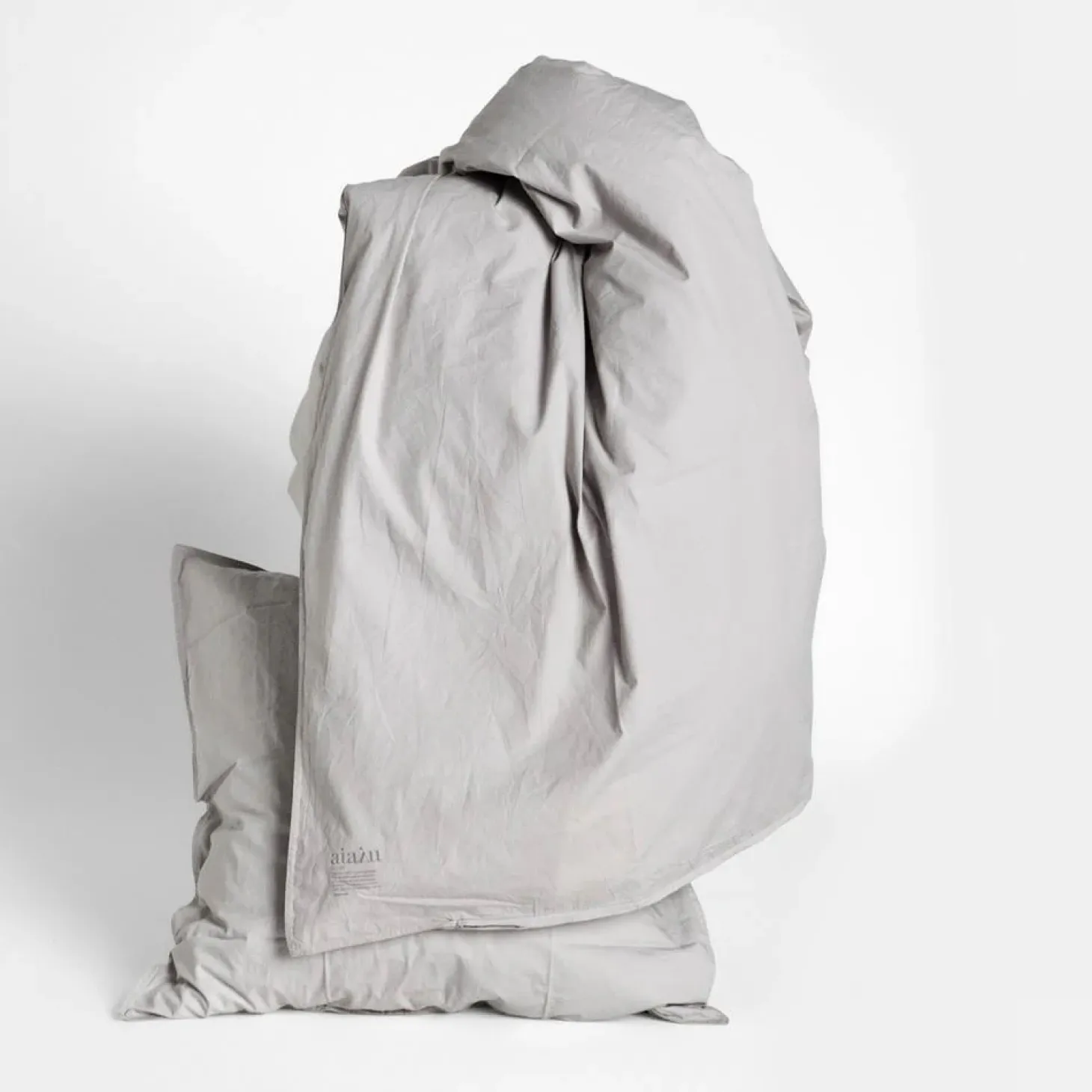 Farve: AshStørrelse: 140 x 200 cm (+ hovedpude, 60 x 63 cm).Materiale: 100% økologisk bomuld. GOTS-certificeret.Vaskeanvisning: Ved maskinvask anbefaler Aiayu 30-40 grader og brug af miljøvenligt vaskemiddel. Undgå tørretumbling og blegemidler
