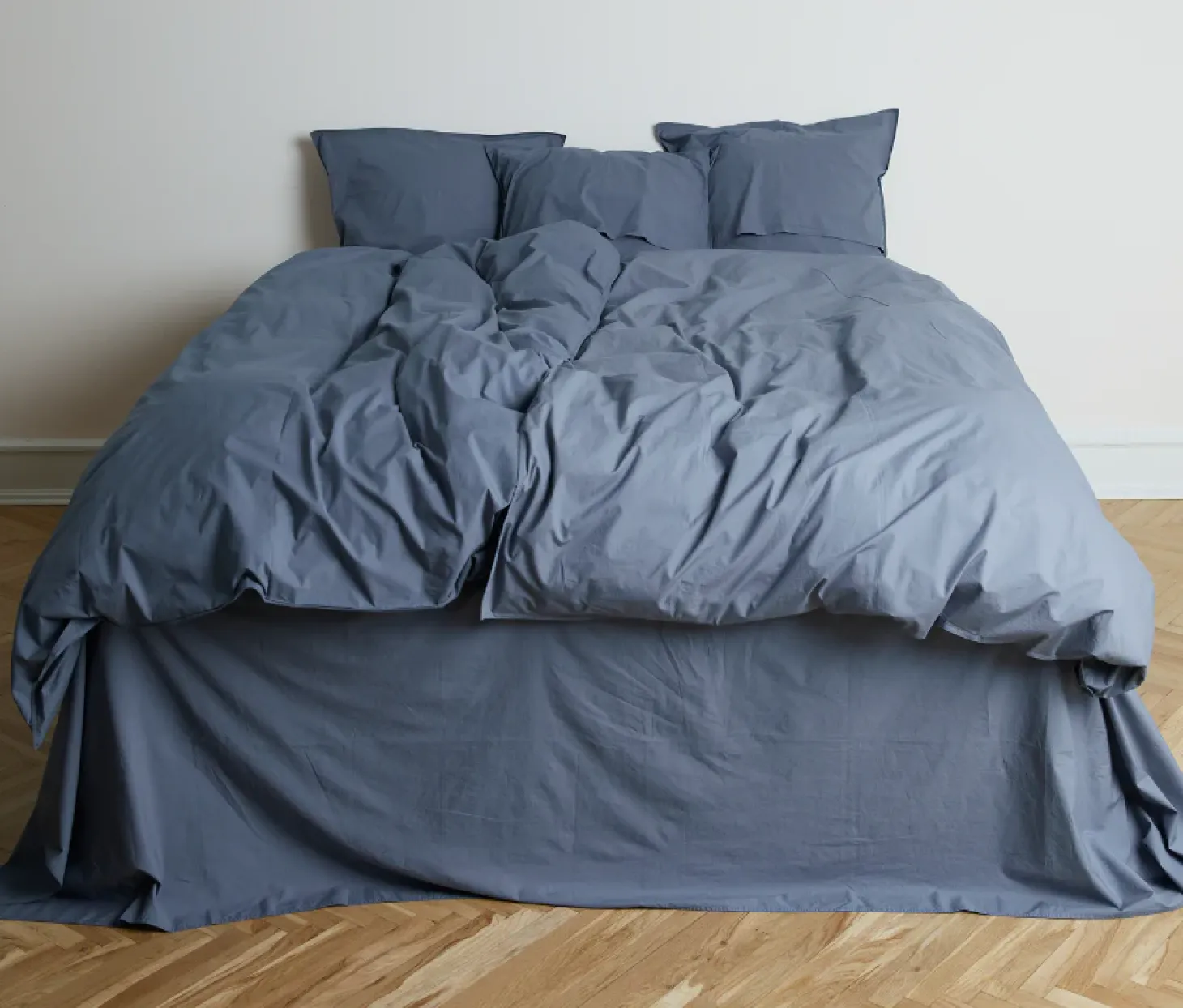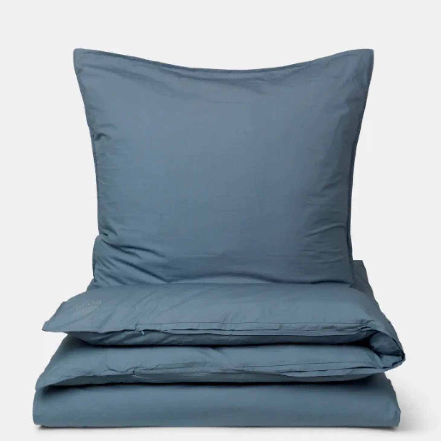 Et havblåt eller mørkeblåt sengesæt i 100% økologisk bomuld. Forkæl dig selv med sengetøj fra Danske Aiayu.