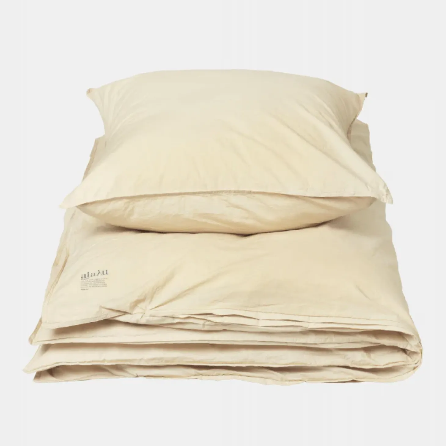 Farve: SaharaStørrelse: 220 x 200 cm (+ 2 hovedpuder, 60 x 63 cm).Materiale: 100% økologisk bomuld. GOTS-certificeret.Vaskeanvisning: Ved maskinvask anbefaler Aiayu 30-40 grader og brug af miljøvenligt vaskemiddel. Undgå tørretumbling og blegemidler.