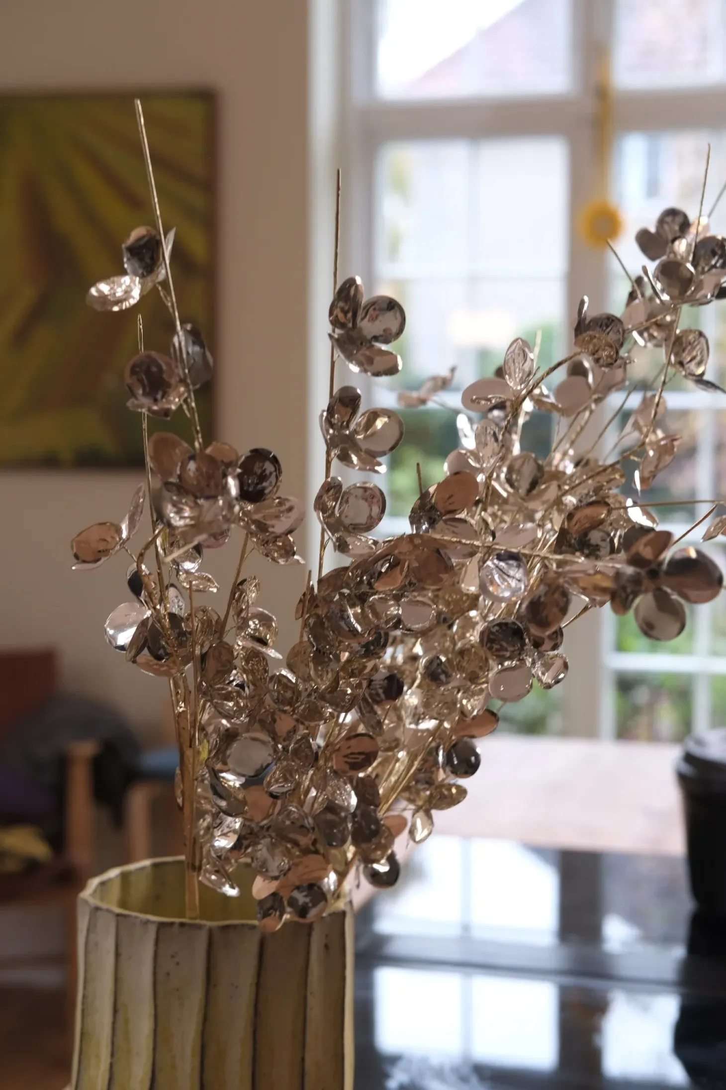 En elegant gren med gyldne blomster.