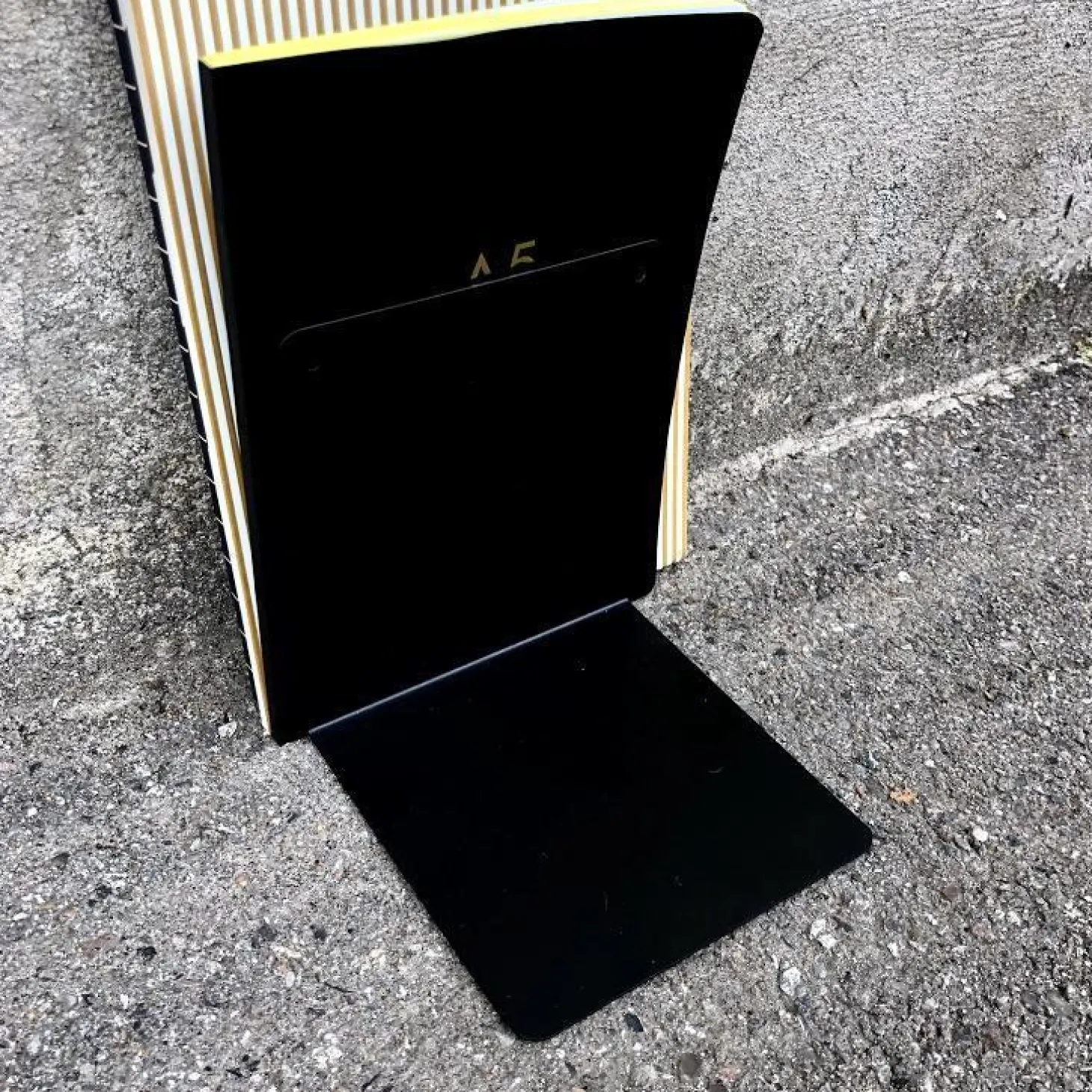 Italiensk bogstøtte i lakeret metal i sort. Bogstøtten er lavet med skruehuller, så den også kan bruges som en lille hylde, f.eks til nøgler eller en toiletrulle, på en gallerivæg med en vase eller til Legofigurerne på børneværelset. Hylden / bogstøtten findes i mange fantastiske farver, og den sorte er ret cool og flot.
