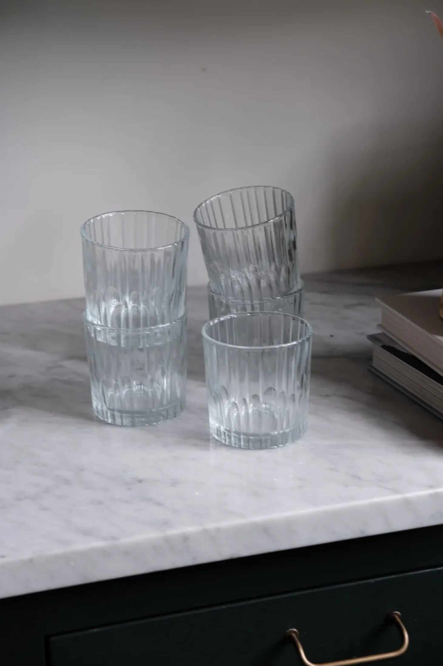 Det er en gave de allerfleste bliver glade for og kan bruge flere af. Det tykke pressede glas gør, at glasset kan tåle både kaffe, te og fyrfadslys. Den oprindelige tanke var en gylden whisky med isklumper i.