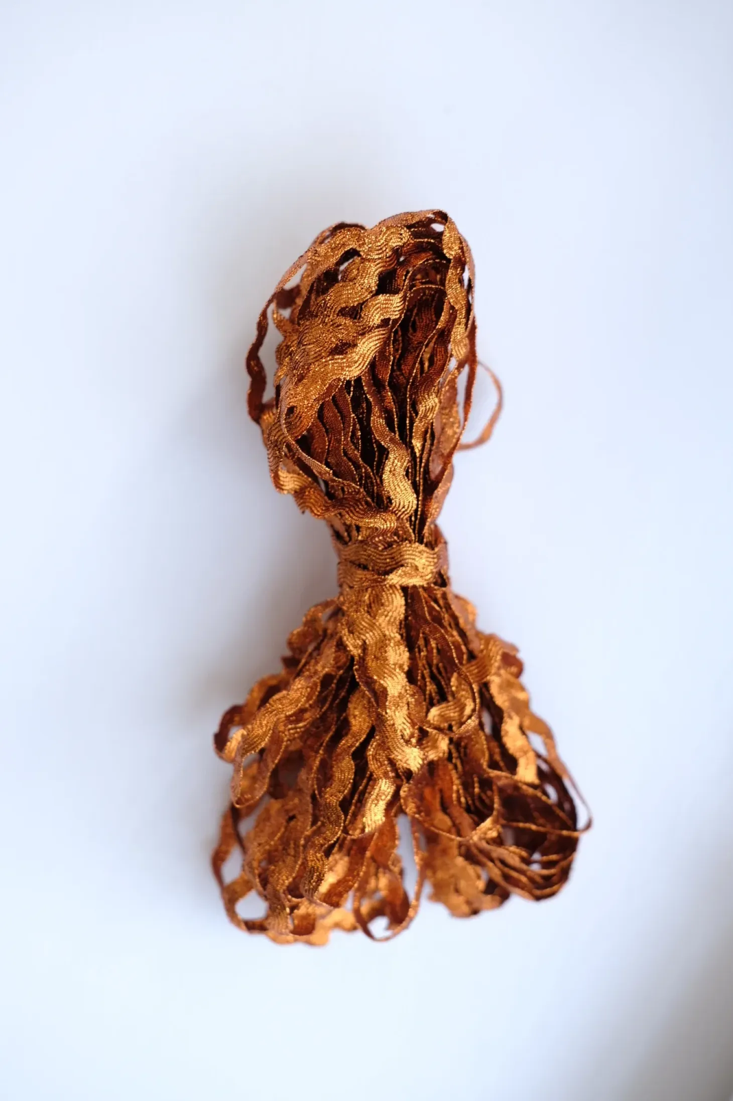 En ny serie af glade juvelfarvede metalliske ric rac-bånd. Mål: Båndet er 8mm bredt og kommer med 13 meter Materiale: Vævet polyester og metallisk tråd.