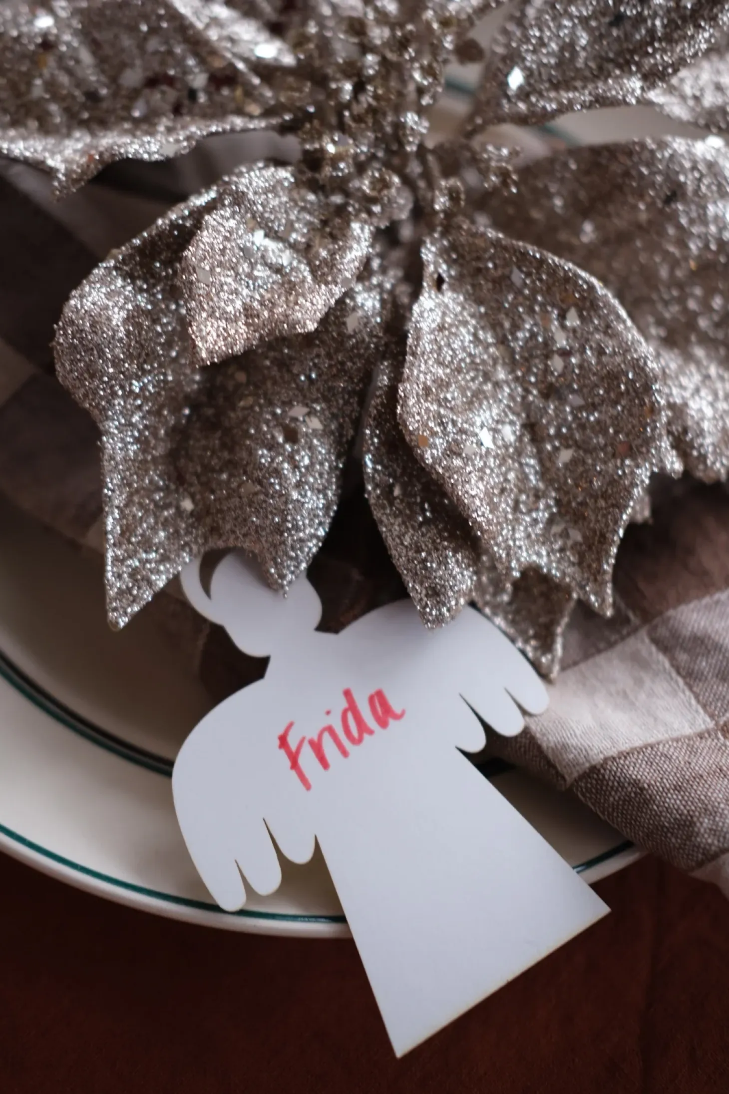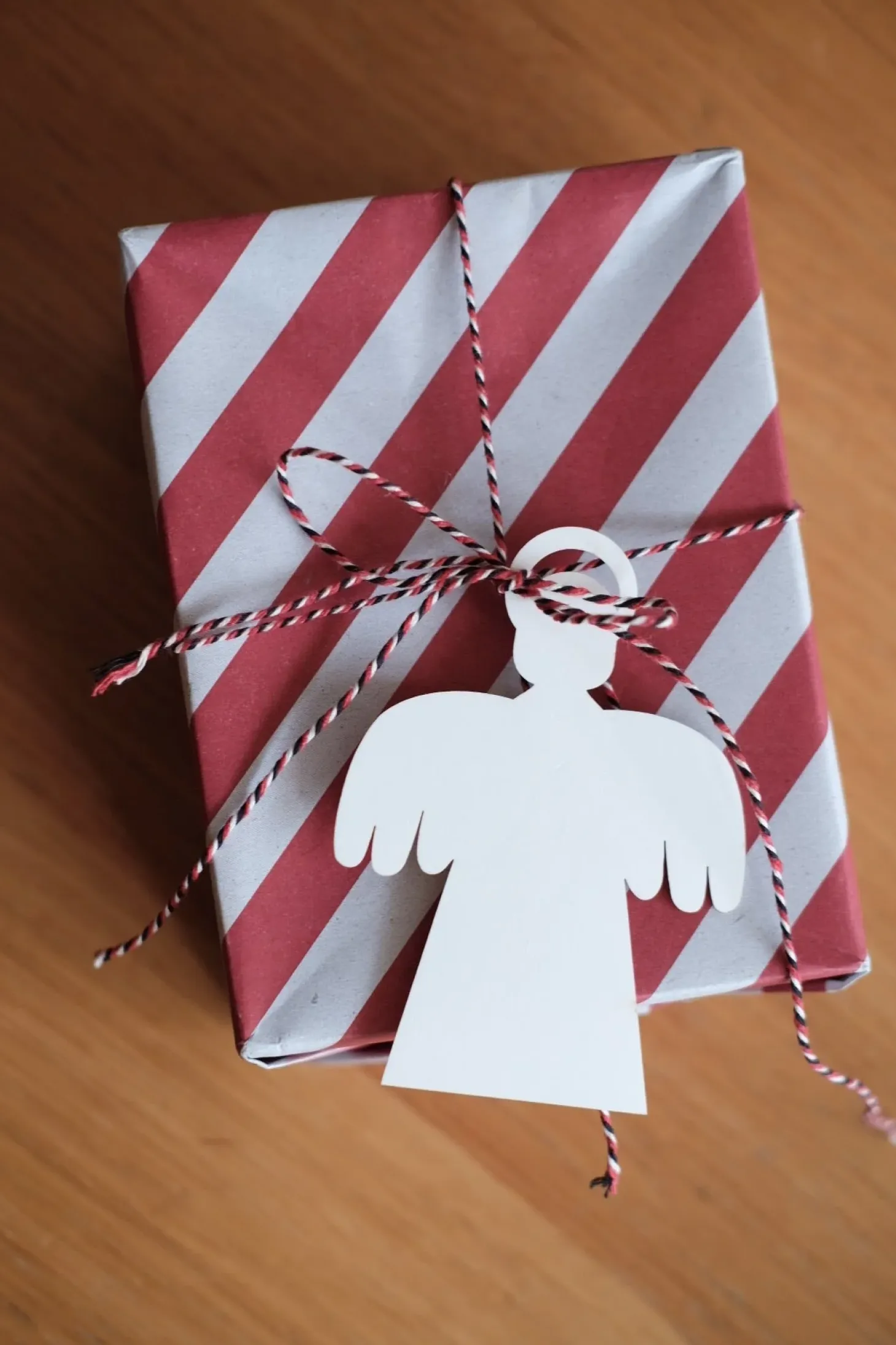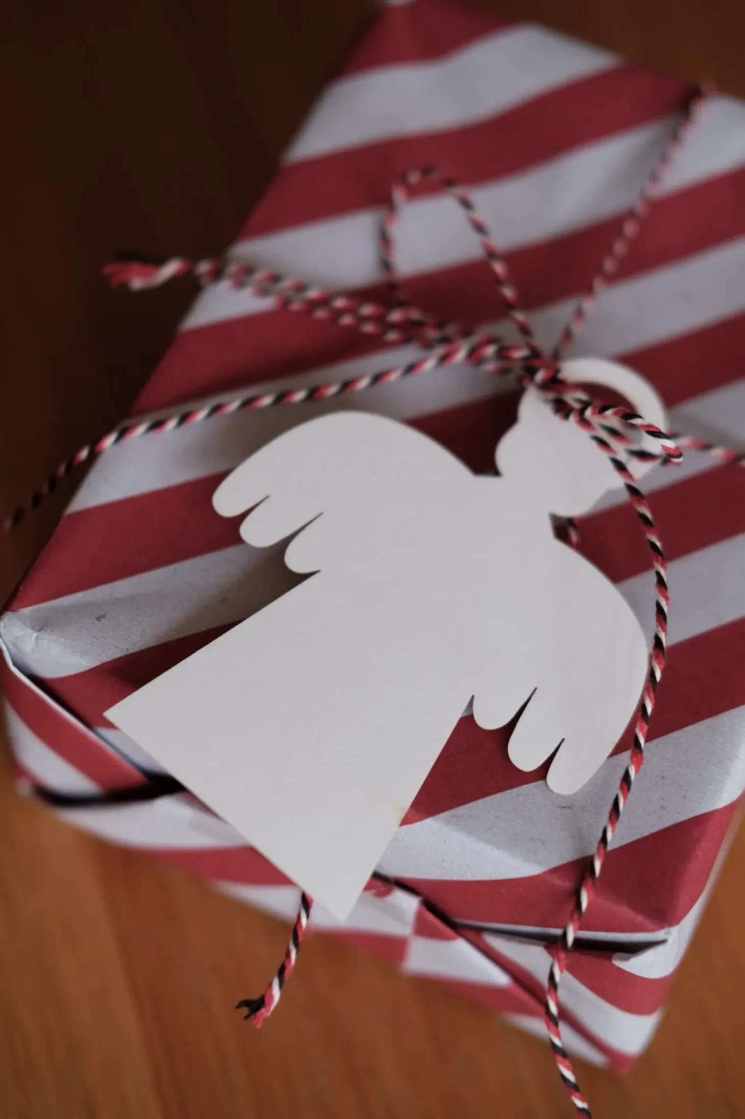 Gavemærker i form som en engel. Skøn på en pakke til jul, advent eller kalendergaver!