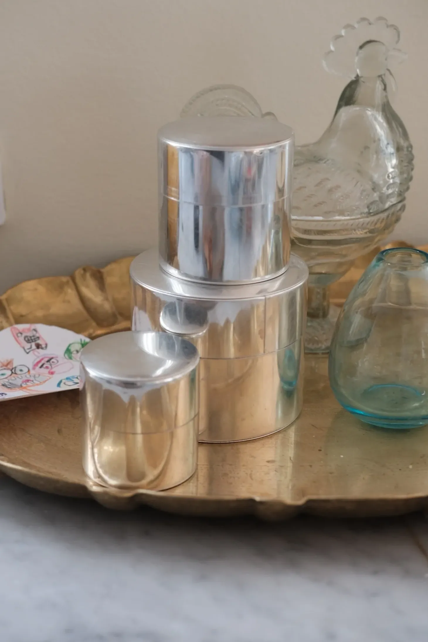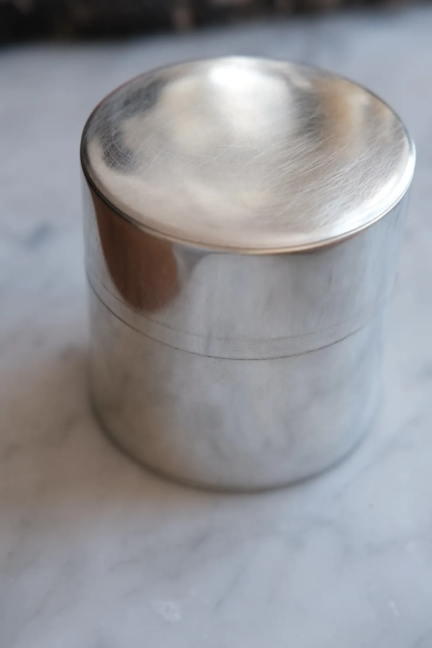 Super smuk håndlavet dåse i tin og med et ekstra lille låg indeni, som holder ekstra tæt. God at have stående – til småting. Vi bruger vores til teblade og neskaffe.