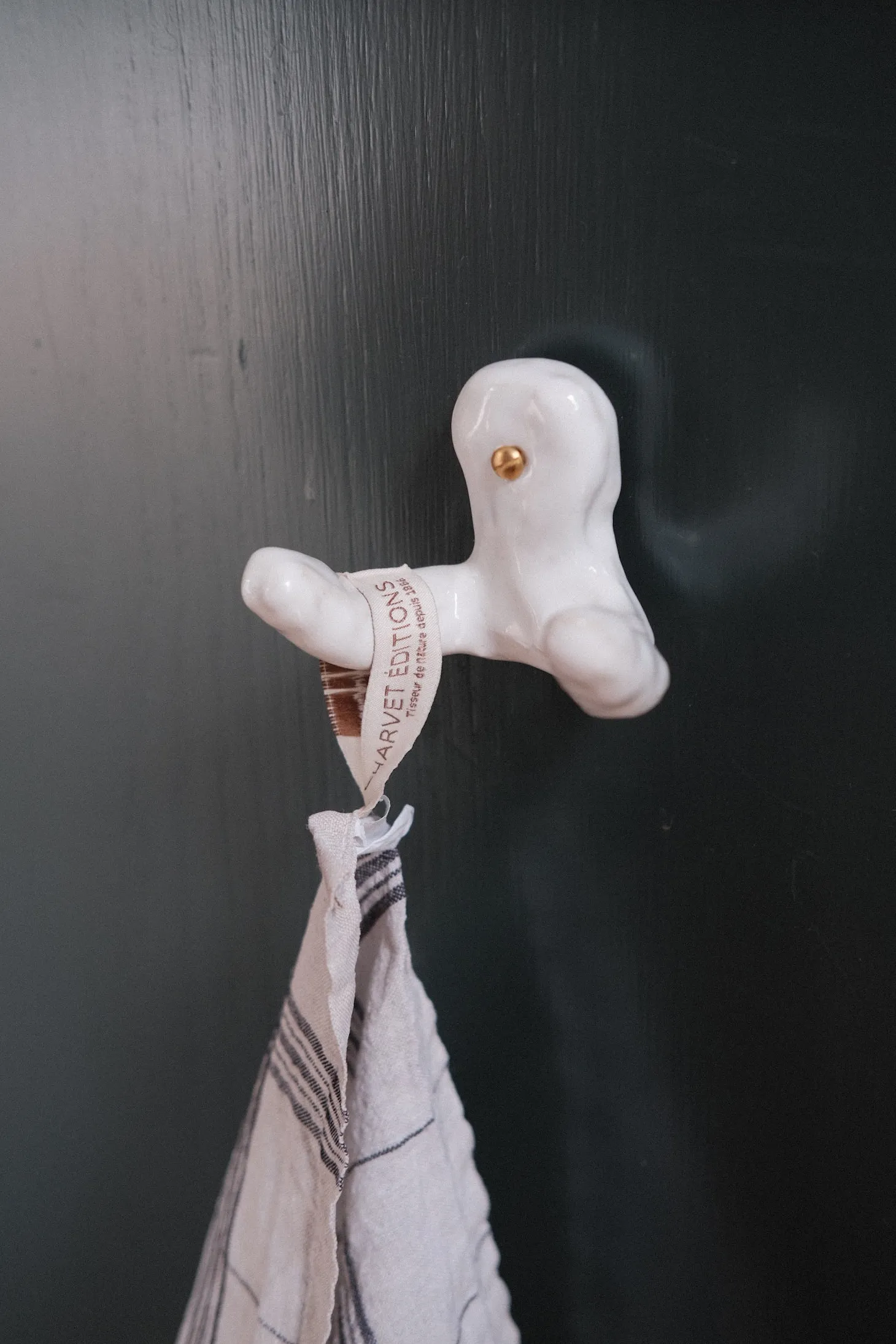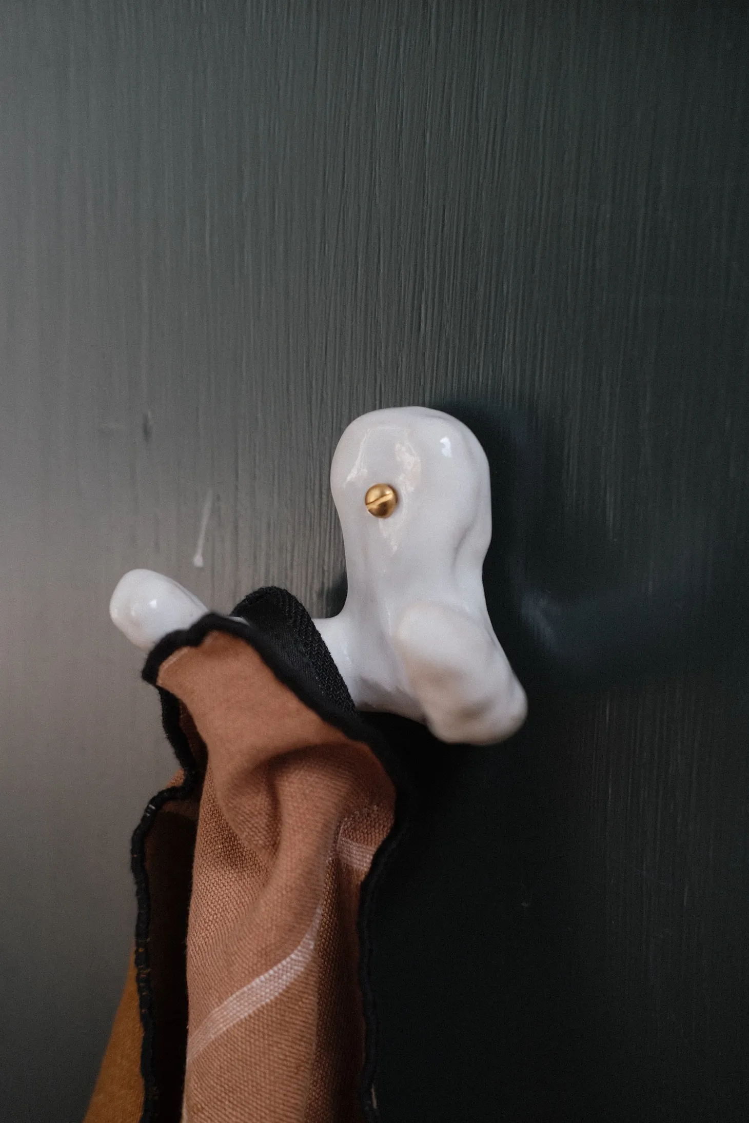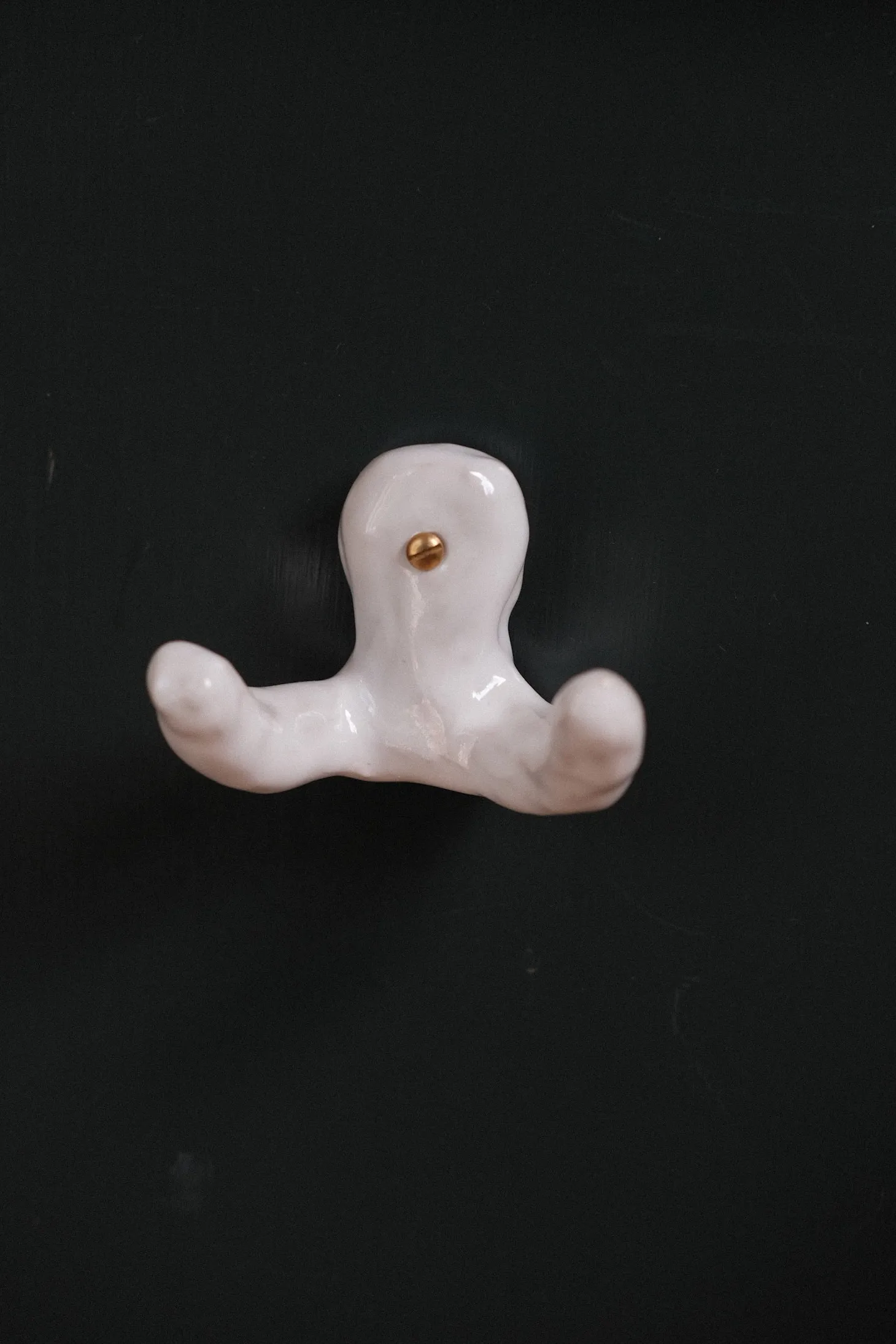 En knage med karakter! Skøn håndlavet knage i hvid fra Emilie Holm Atelier. Emilie arbejder med at genfortælle hverdagens kendte objekter – Vi synes denne knage er skøn og dens finurlige formsprog gør at den skaber liv omkring sig!