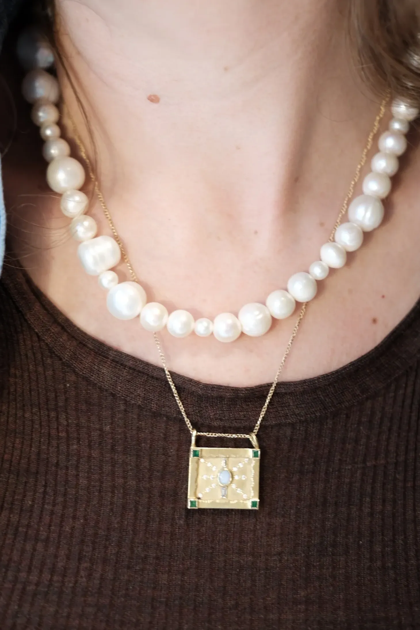 En elegant halskæde lavet i højkvalitets ferskvandsperler. De naturligt skabte sten skaber det helt rigtige udtryk, hvis du spørger os. Vi synes den har karakter og er super cool til alt fra en t-shirt til den festlige garderobe.Smykkerne er håndlavet i Holland af et lille team på Labros atelier.