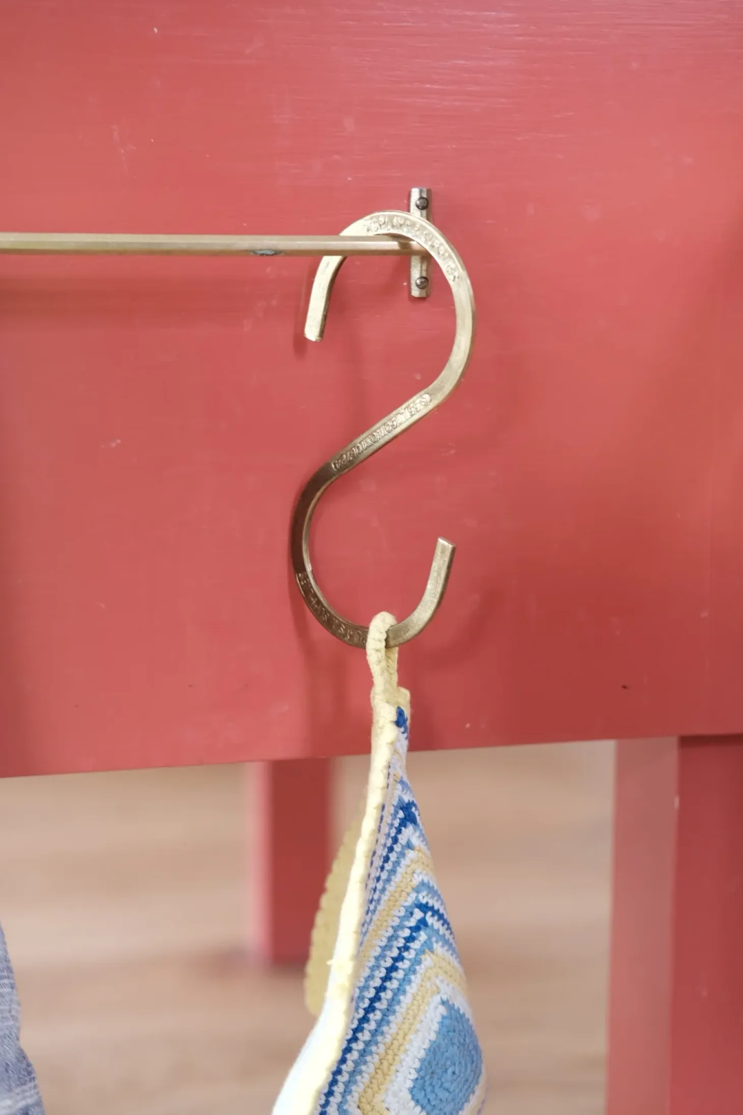 Rå S-kroge i messing. Krogen er lavet i en meget rå stil, så den kan være ridset, oxideret og med utydelige bogstaver.