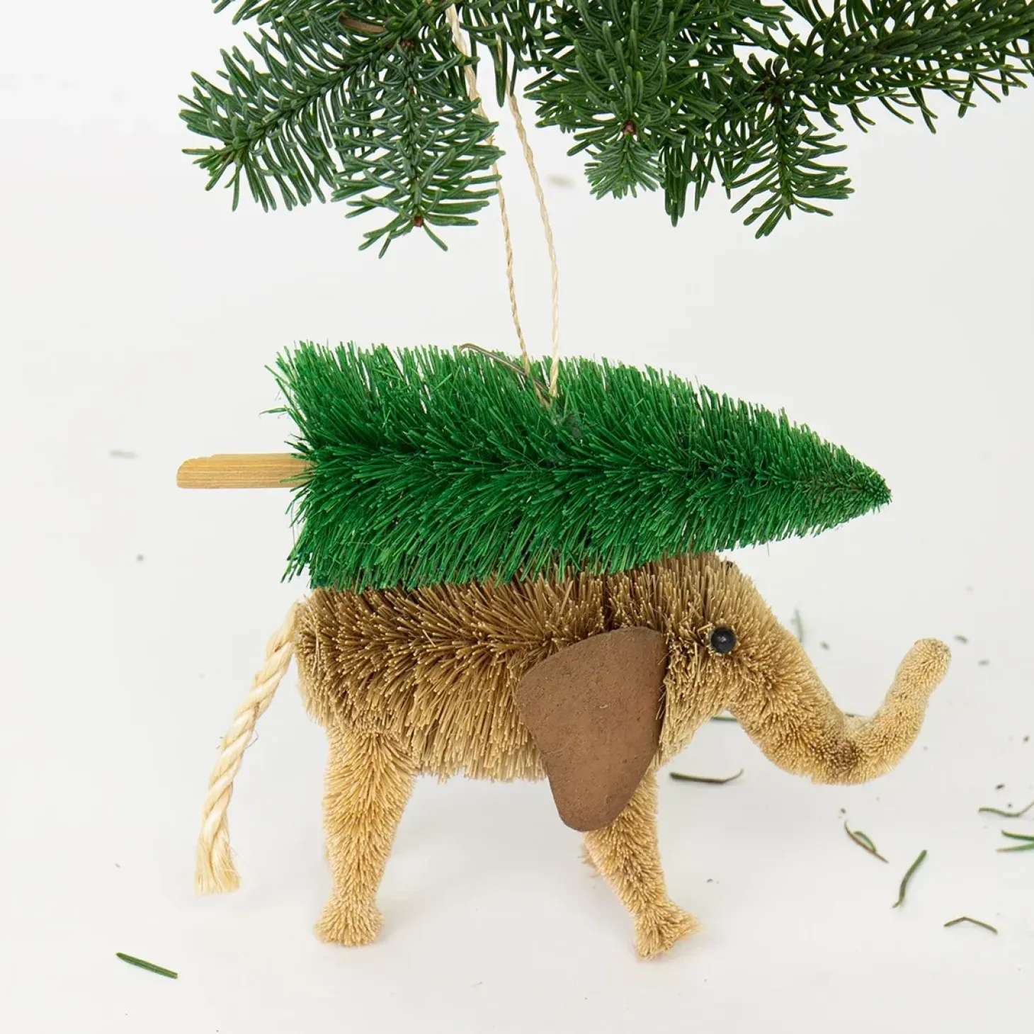 Den er da skøn. Transport af et juletræ er en klassiker – nu på elefant.