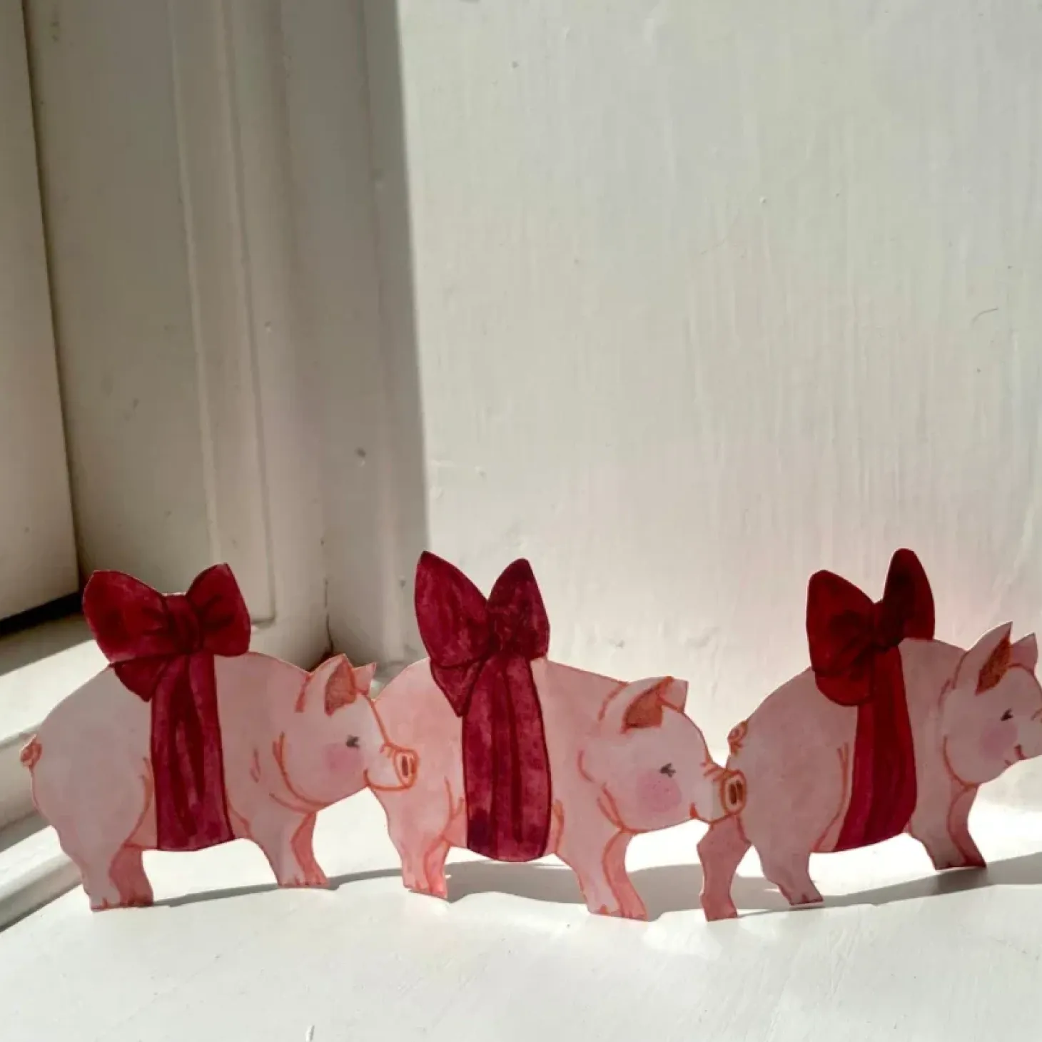 Her er et lille projekt hvor man klipper Grissebasser ud. Grisebasserne kan stå på bordet som en fin dekoration. Herhjemme og i Norge spiller grisen en helt særlig rolle, da den er præmien til dén gæst, som får mandlen i julemiddagens dessert; risalamanden. Heldige gæst! Du kan også pynte bordet med de små grise ved tallerknerne, så der er en lille aktivitet til børnene.