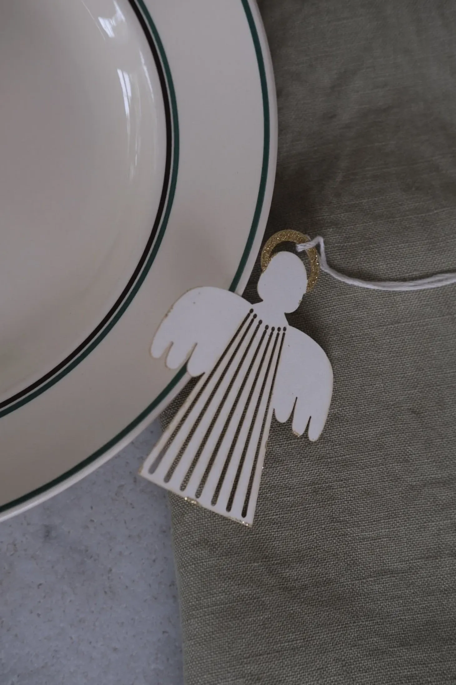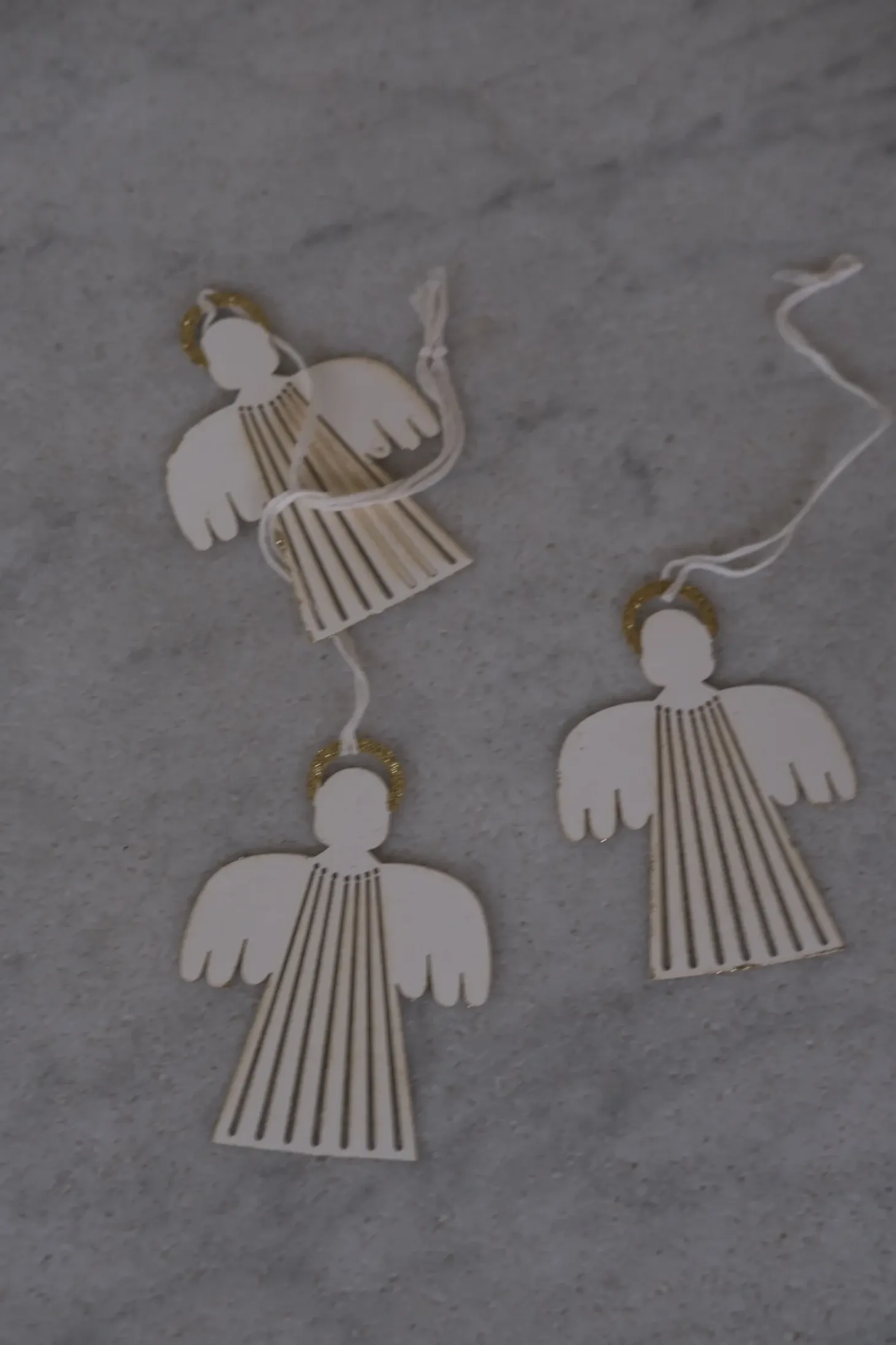 Hvid papir julepynt i form som englebasser. Skøn på en pakke til jul, på træet eller andet sted.Der kommer 3 stk i en pakke.