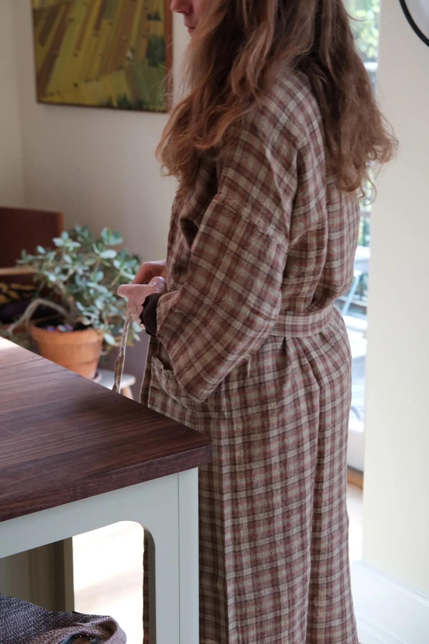 Kimono fra franske Linge Particulier.Farve: Tartan Sienne Vert – Ternet