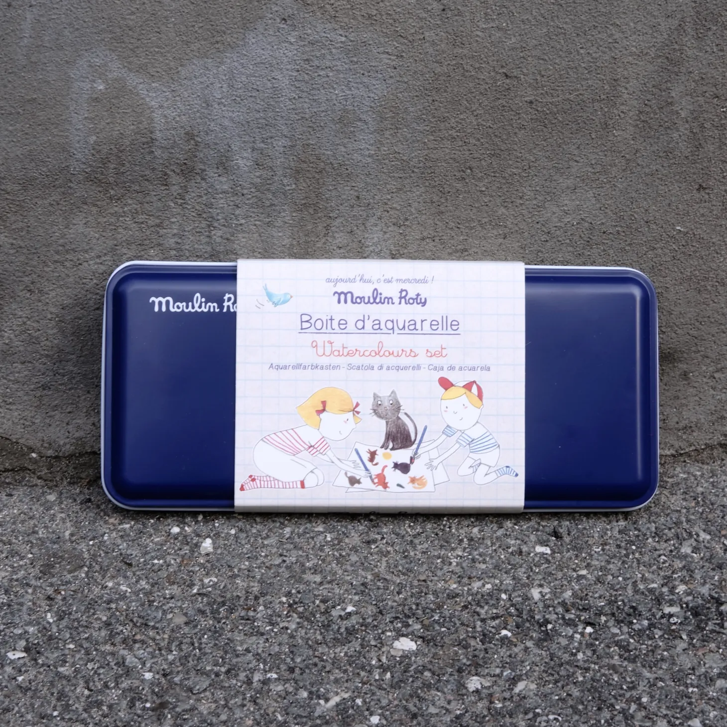 Design: Moulin RotyFarve: Blå med 24 forskellige akvarelfarverMål: 20 x 10 cmMateriale: Metal, plast, akvarel