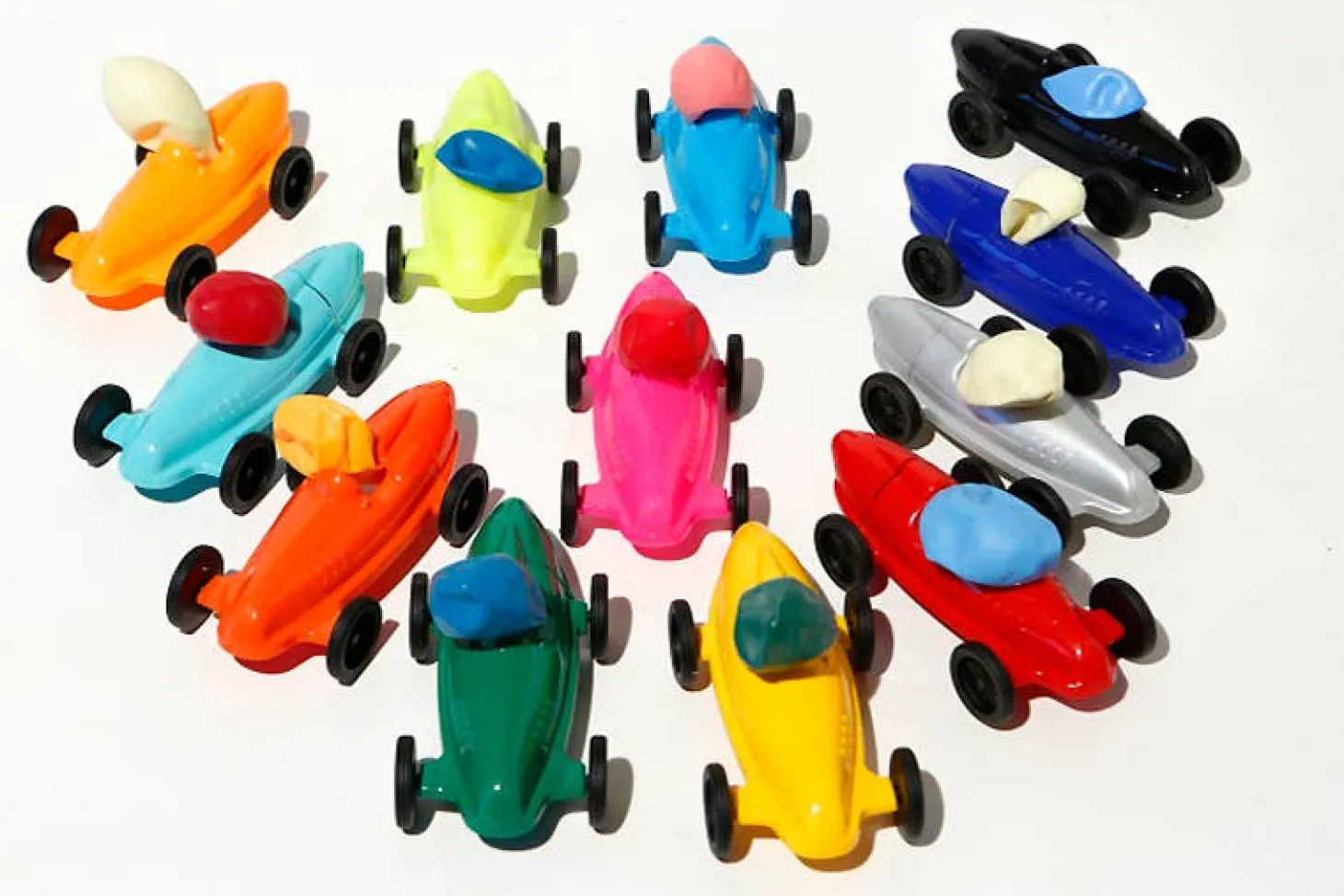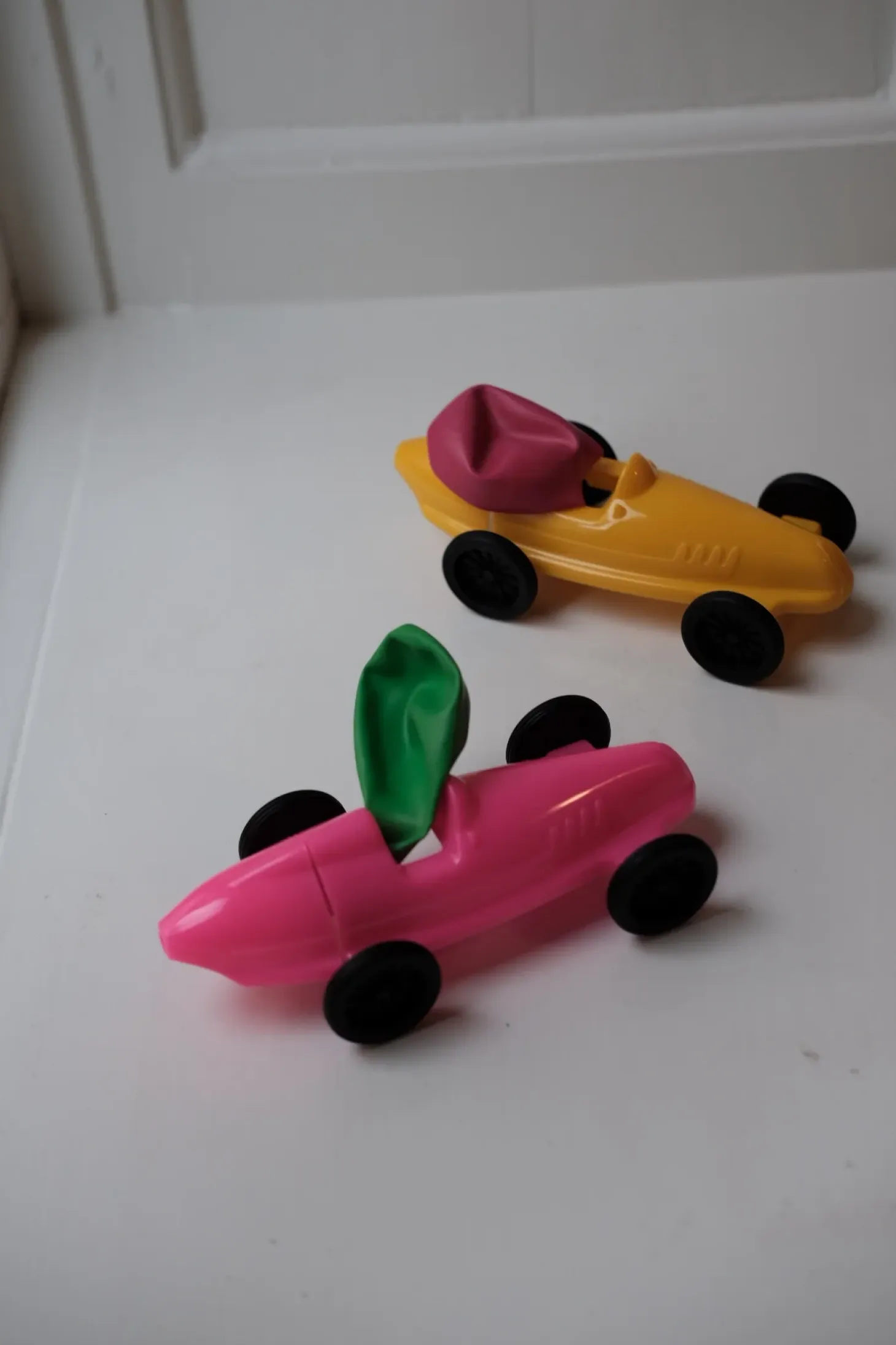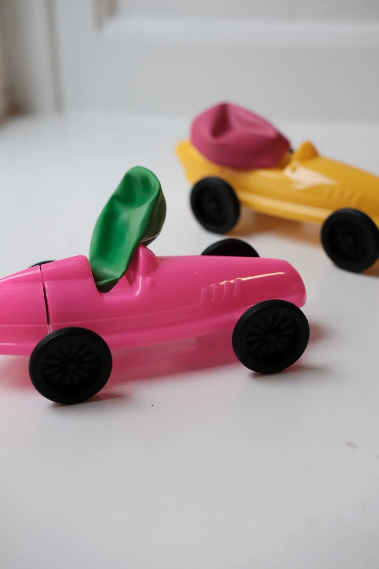 Ballon bilen. Et simpelt princip, der har eksisteret i årtier i en bred vifte af designs. Very simple. Pust ballonen op med mundstykket, hold hullet med fingeren, sæt bilen på jorden og væk med fingeren!