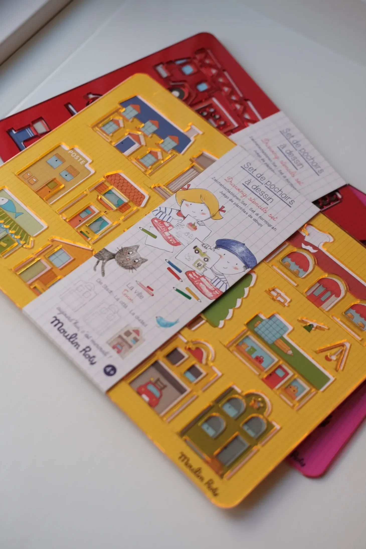 Hvert sæt indeholder 2 skabeloner fra 1 af 3 temaer: I byen, Køretøjer og I hjemmet. Skriv hvilket tema du ønsker, så sender vi dig den. Fremstillet af plastik for at kunne genbruges et utal af gange. Vaskbar overflade.Størrelse: 27 x 19 cm