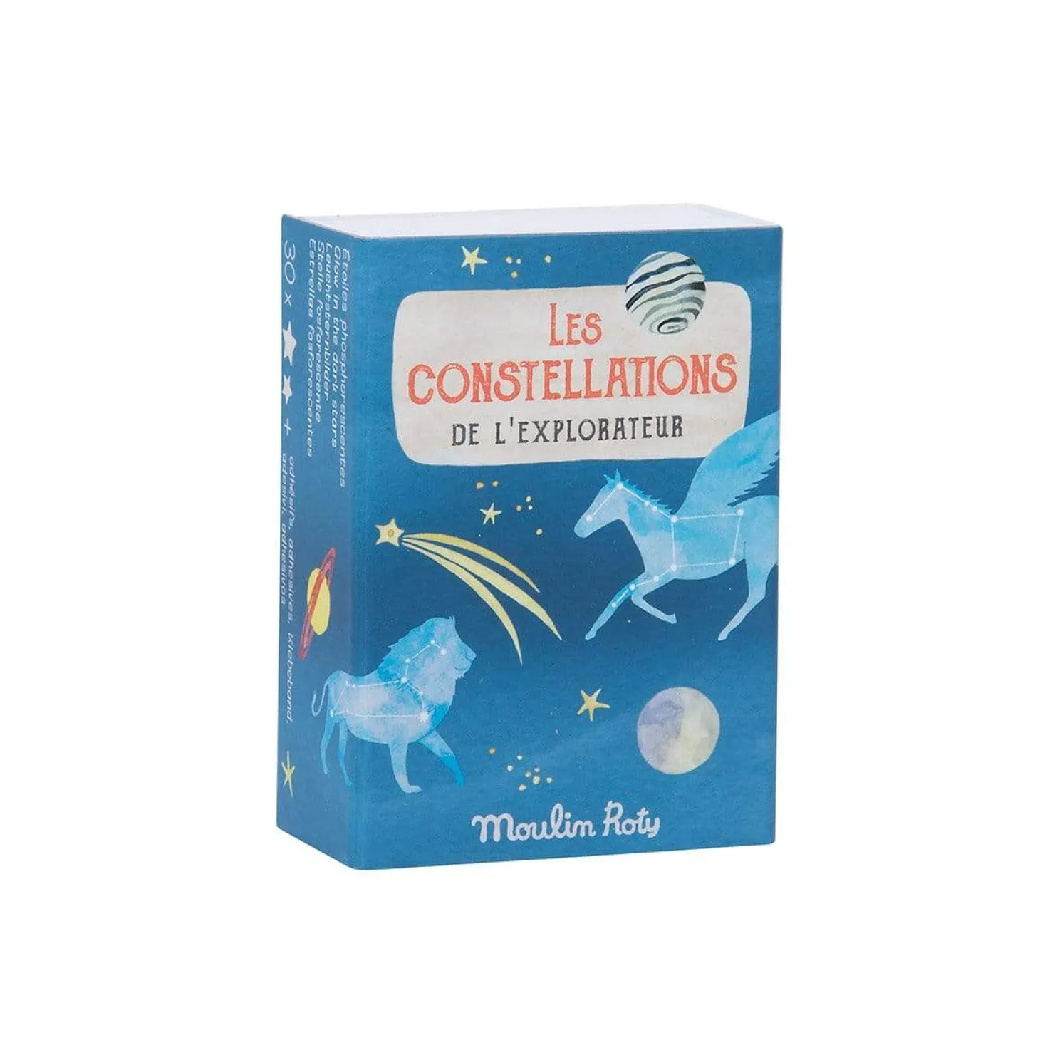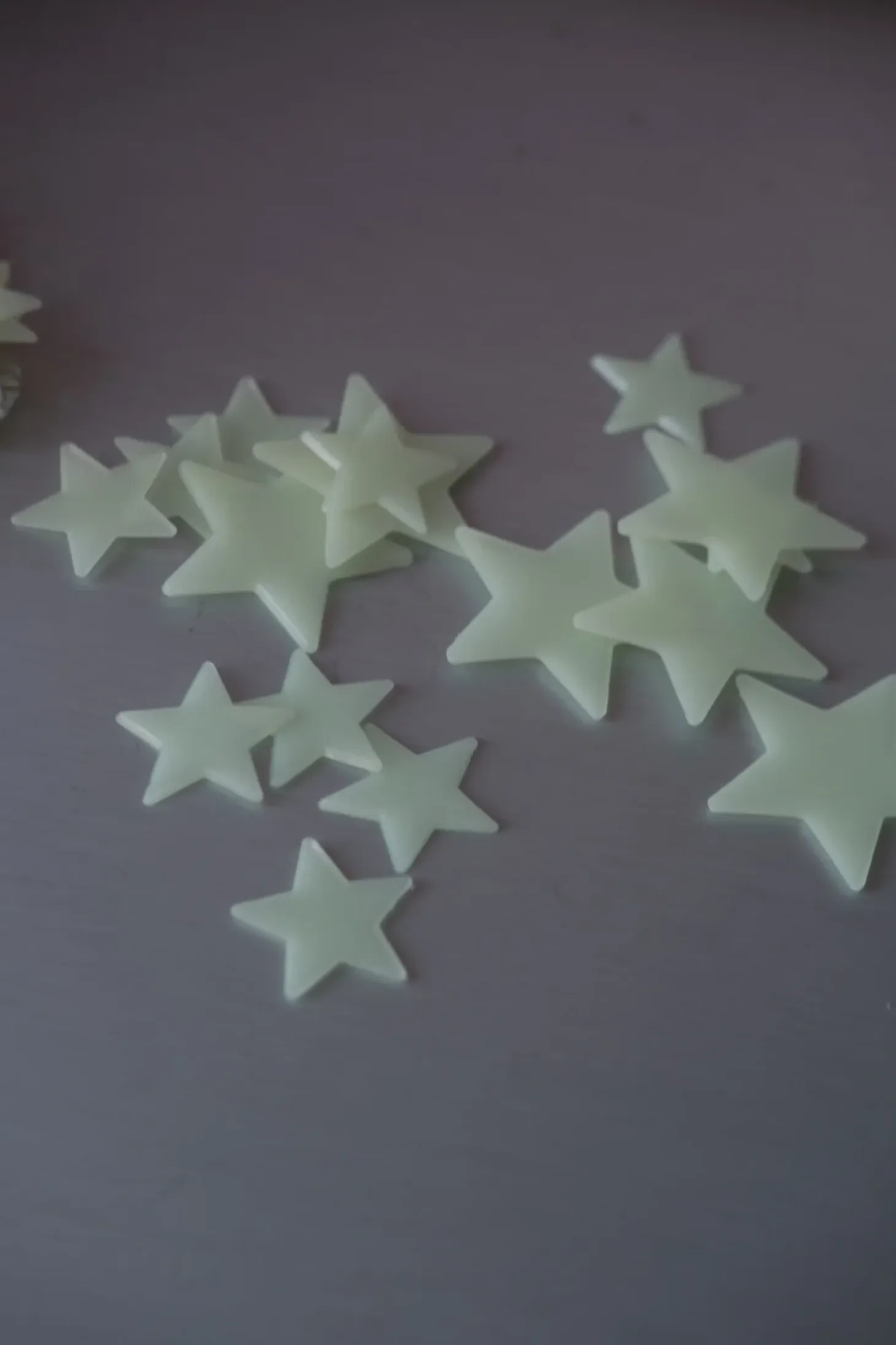 Et sæt af selvlysende stjerner, men også et par kort over stjernebilleder. Det vil være en god måde at snakke om stjernebilleder og også at hænge stjernerne op i stjernebilleder på væggen eller loftet.