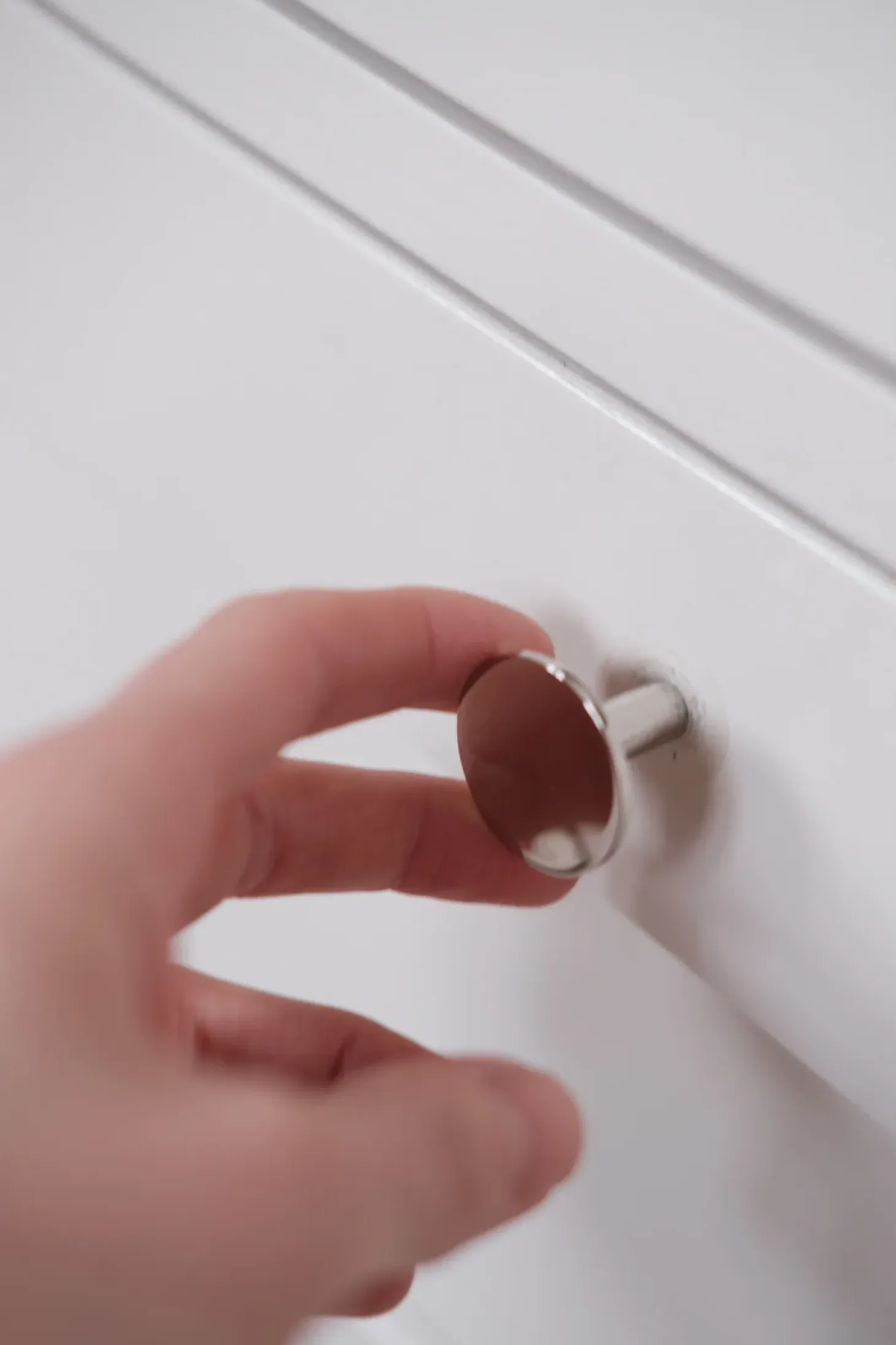 En møbelknap, som er et enkelt og anvendeligt greb. Kan benyttes i væg såvel som på skab.