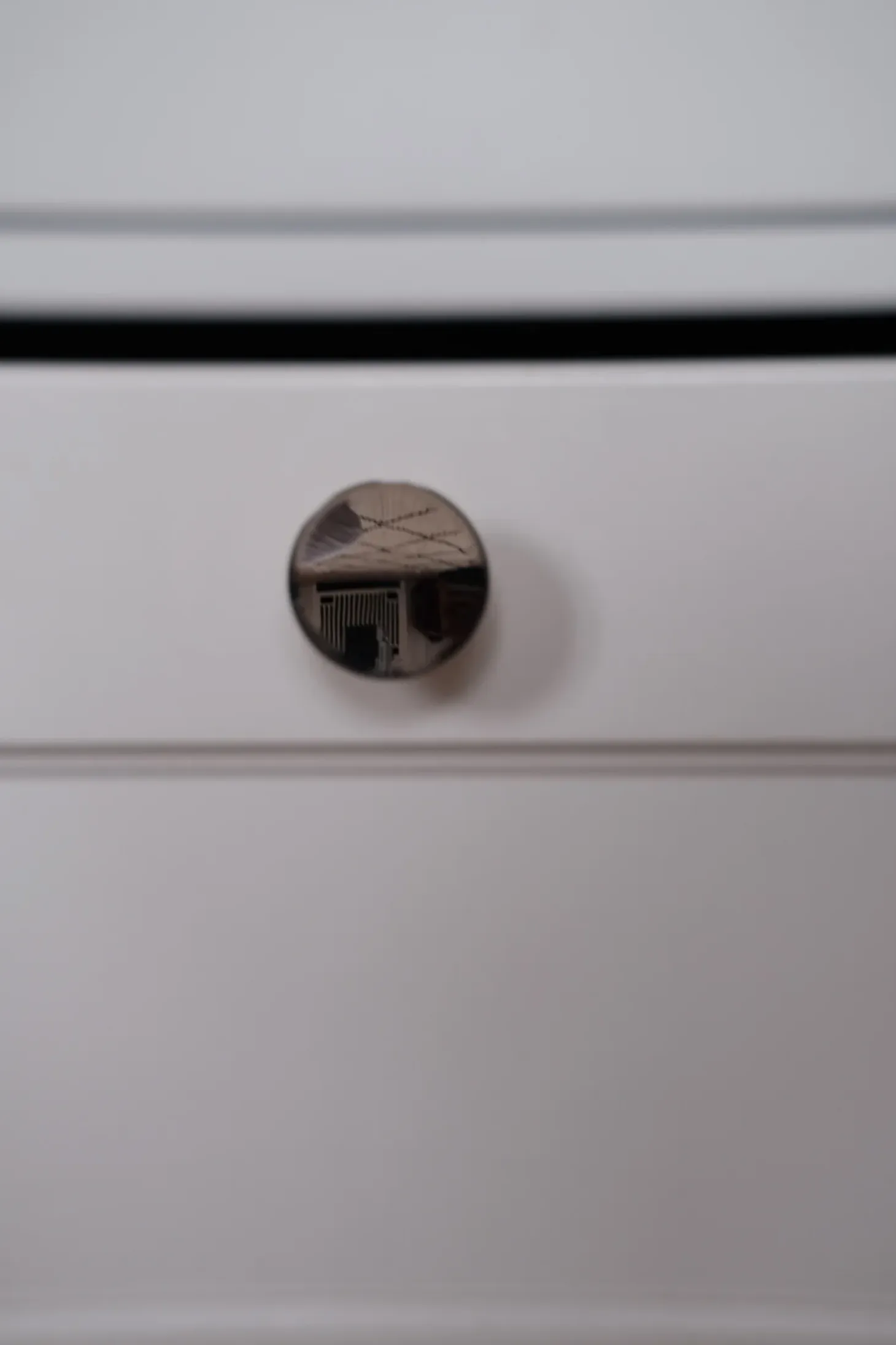 En møbelknap, som er et enkelt og anvendeligt greb. Kan benyttes i væg såvel som på skab.