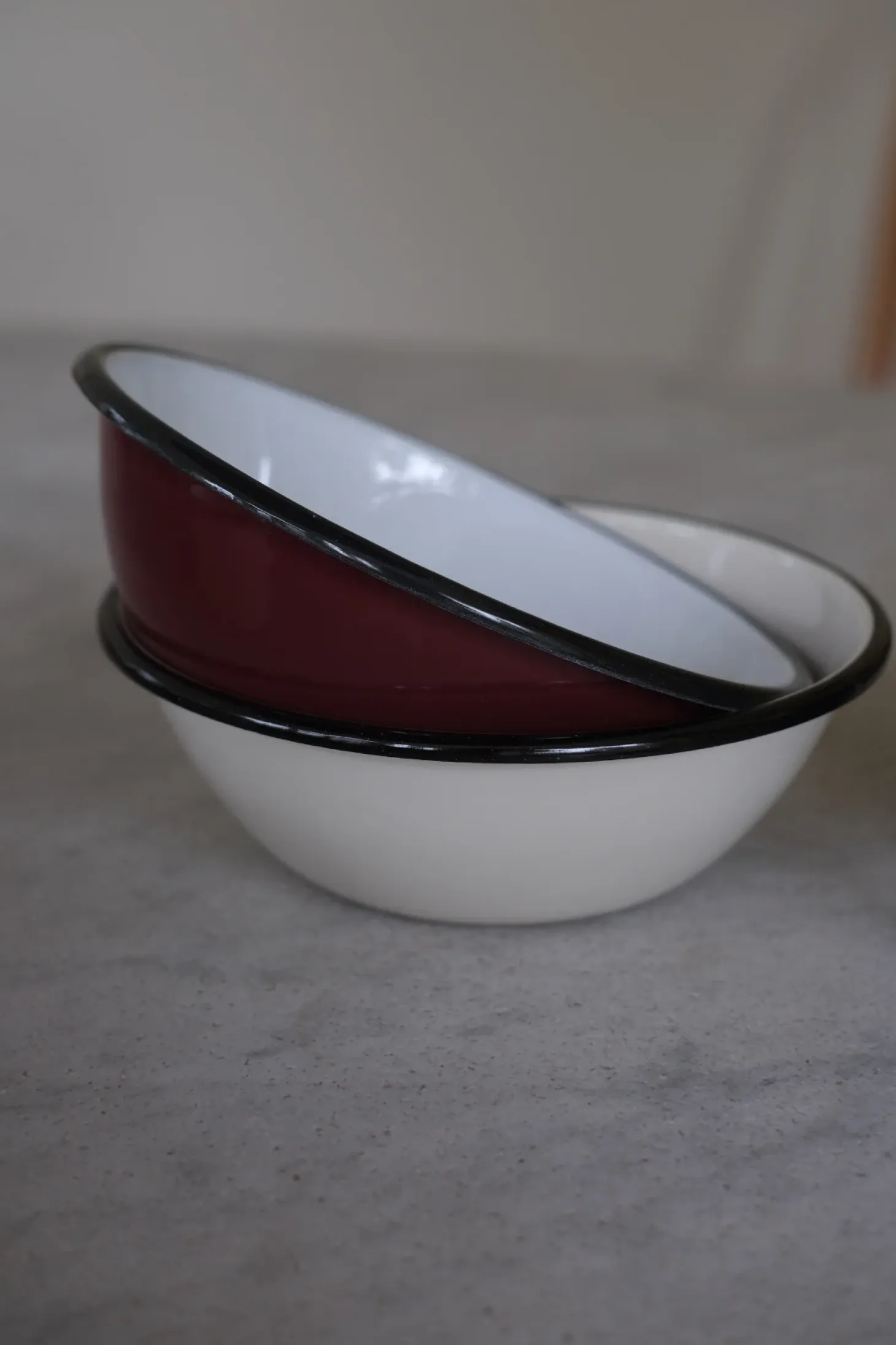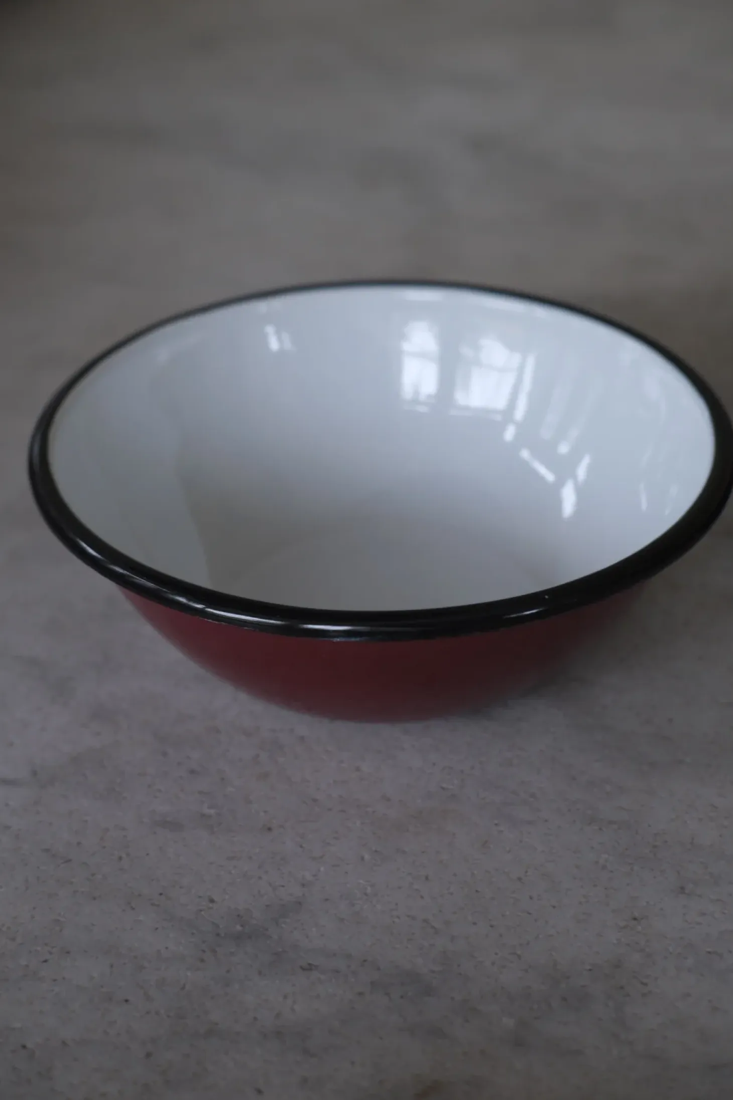 Morgenmadskålen i emalje. Skålen har en helt perfekt størrelse til yoghurt, jordbær eller f.eks chips. Den er er også ret velegnet at medbringe til en picnic, da den både er meget hårdfør og næsten ikke vejer noget.