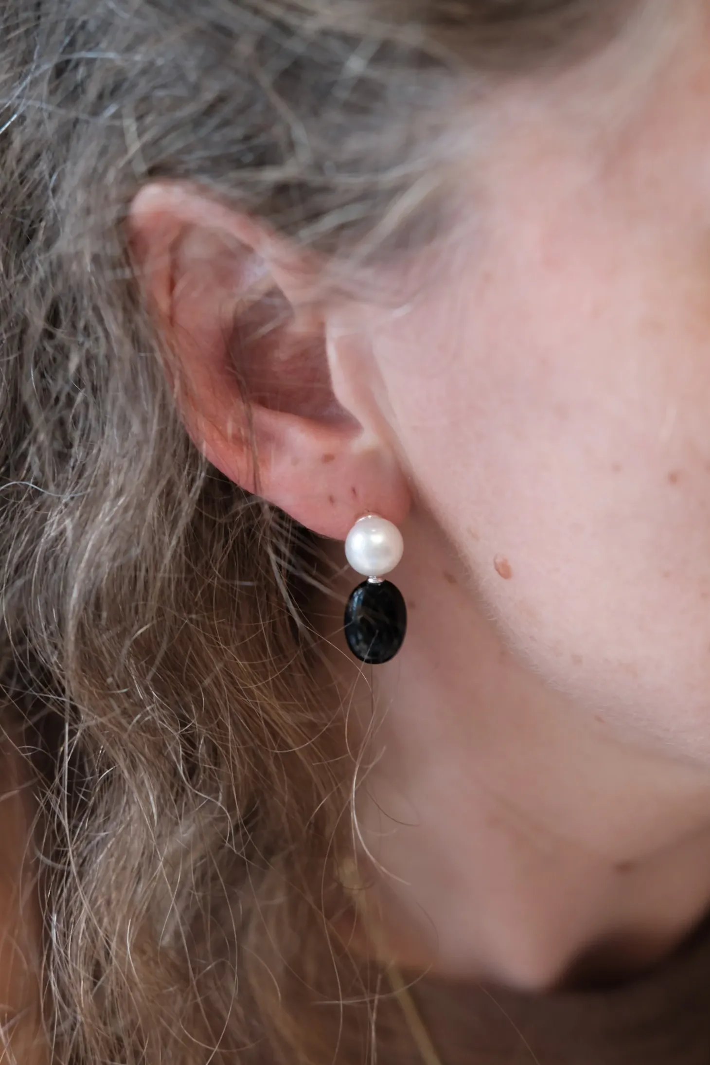 Øreringe • Ferskvandsperle & Sort Oynx • Sølv