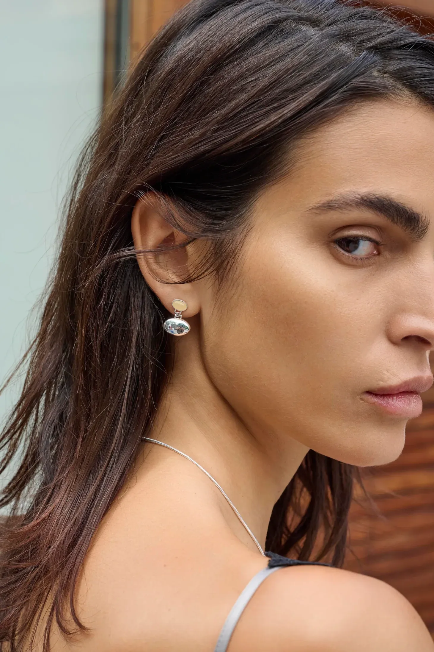 Et par smukke øreringe der ligger sig lige mellem klassisk og morderne. Vi synes de har karakter og er super cool til alt fra en t-shirt til den festlige garderobe.Smykkerne er designet i Danmark.