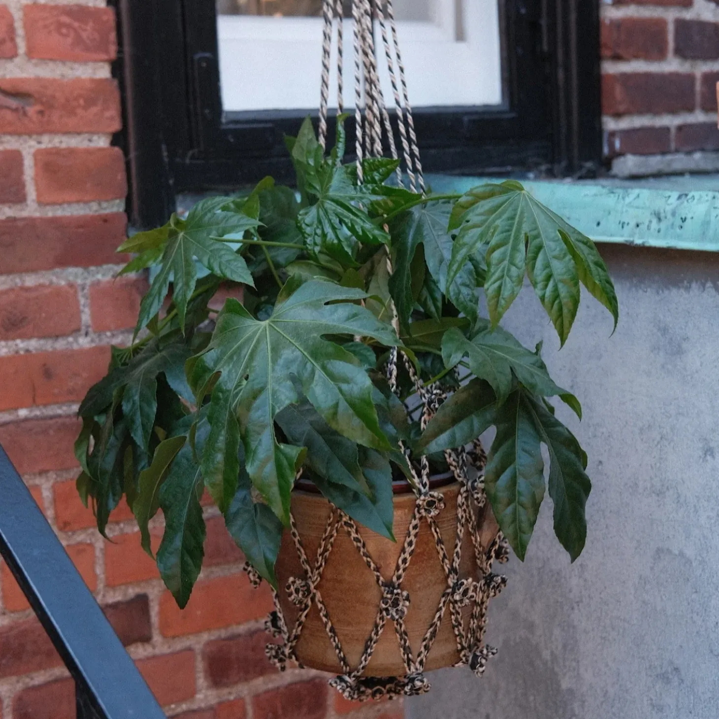 Et ophæng i jute, der er lavet i Bangladesh. Der kan være en blomsterkrukke i.