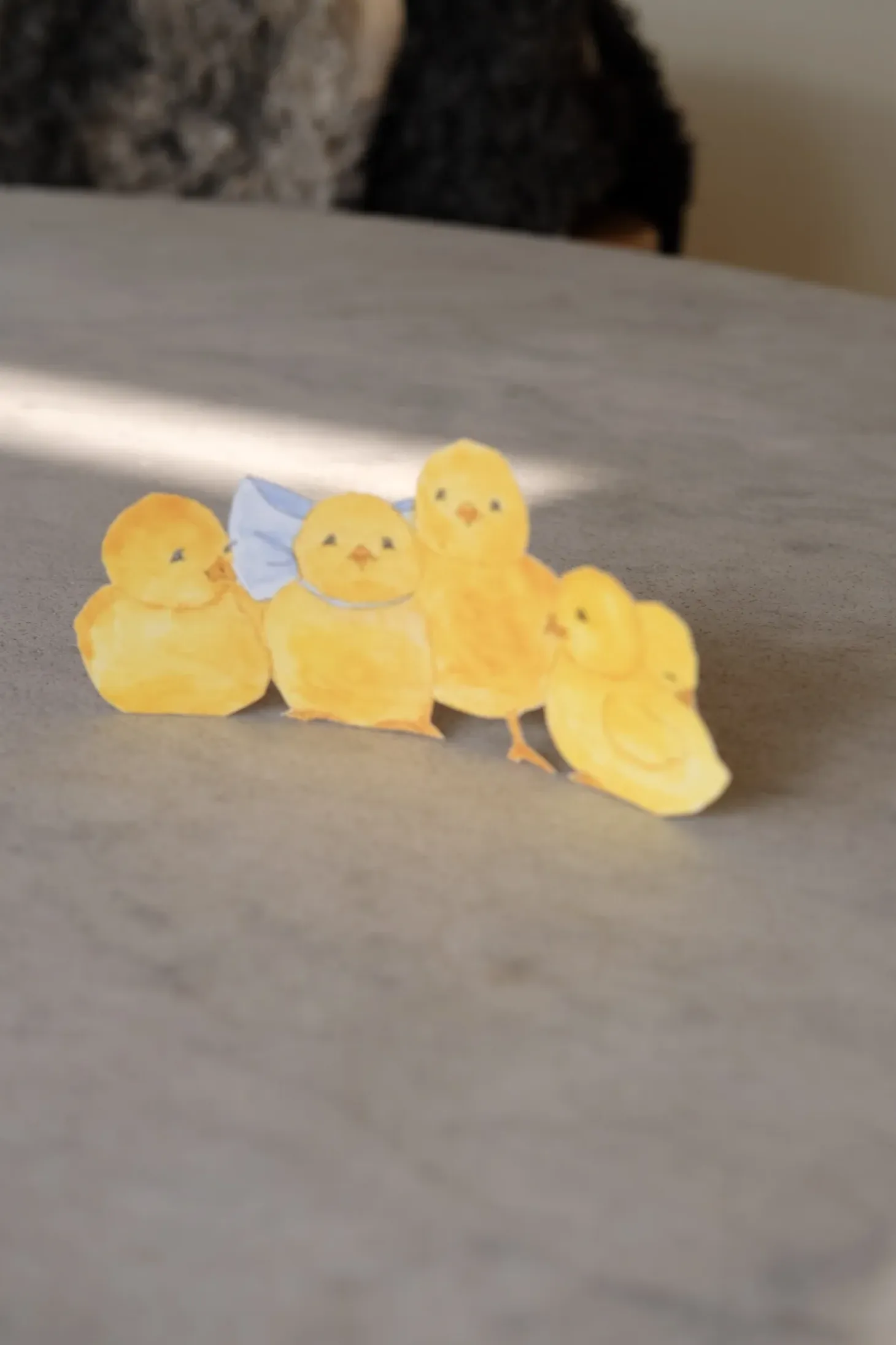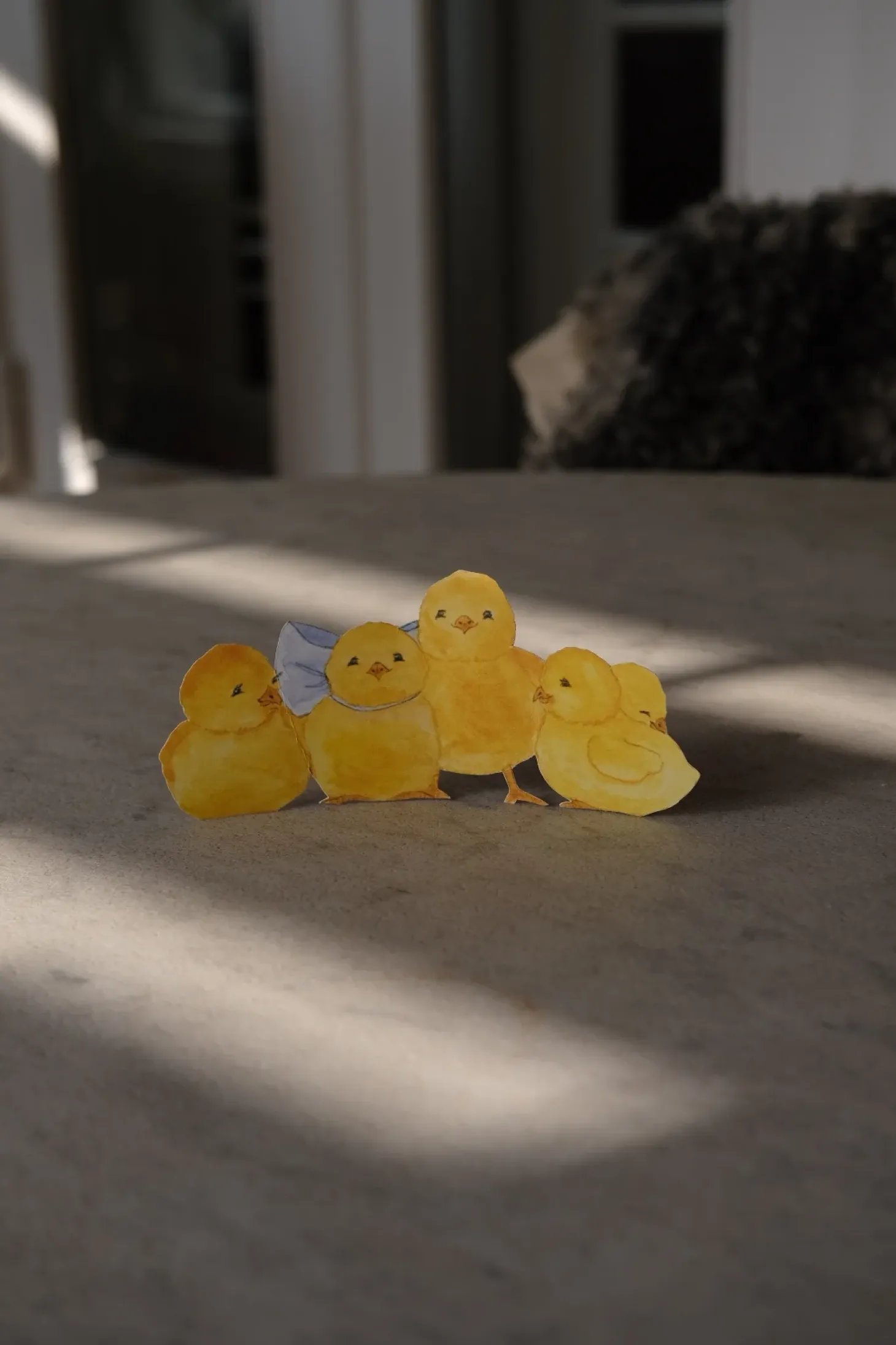 Her er et lille projekt hvor man klipper små påskekyllinger ud. Kyllingerne kan stå på bordet som en fin dekoration. Du kan pynte bordet med de små kyllinger ved tallerknerne, så der er en lille aktivitet til børnene.