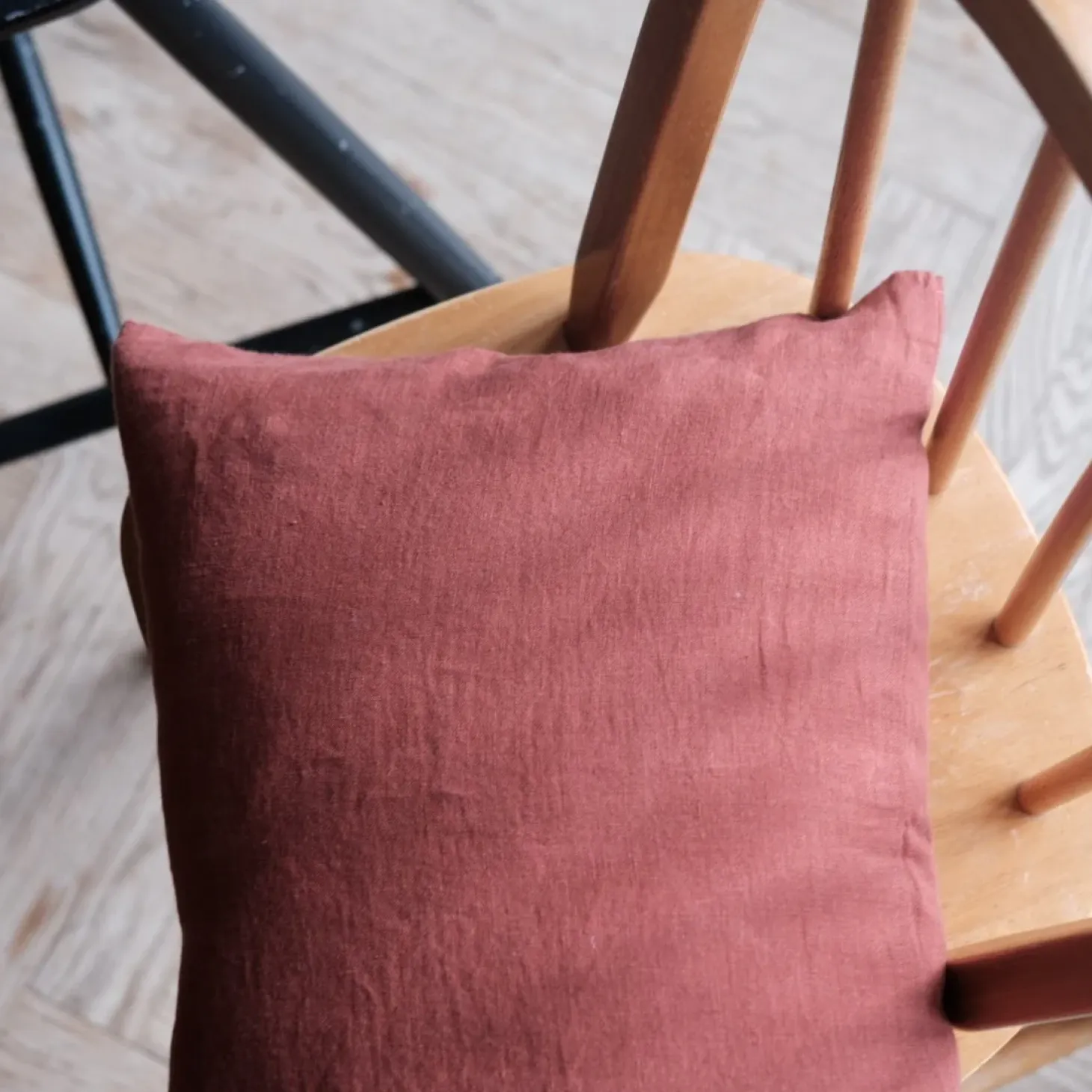 Den lille pude fra franske Linge Particulier er her i en smuk dyb mustensrød. Puden er lavet i lavet af vævet hør, der bagefter er vasket, hvilket giver en helt særlig, blød og holdbar kvalitet, der bare bliver blødere og blødere efter hver vask. Den lille hørpude er fin at bruge som lille ekstrapude eller f.eks. på børneværelset.