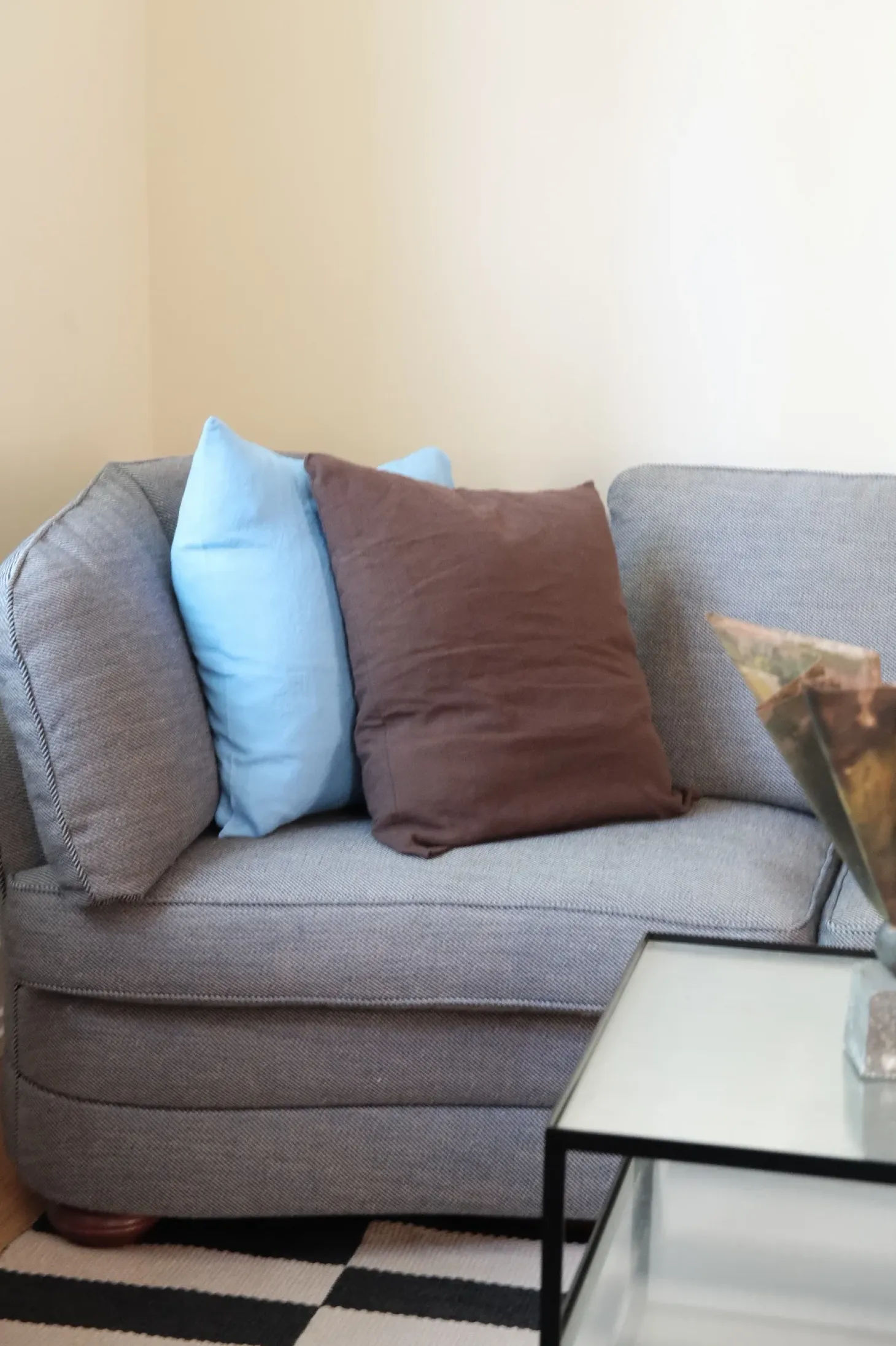 Vask: Vaskes ved 40 grader, og vi anbefaler lufttørring. Pudebetrækket kan stryges, men vi synes, det er flottere og mere ‘høragtigt’ uden strygning