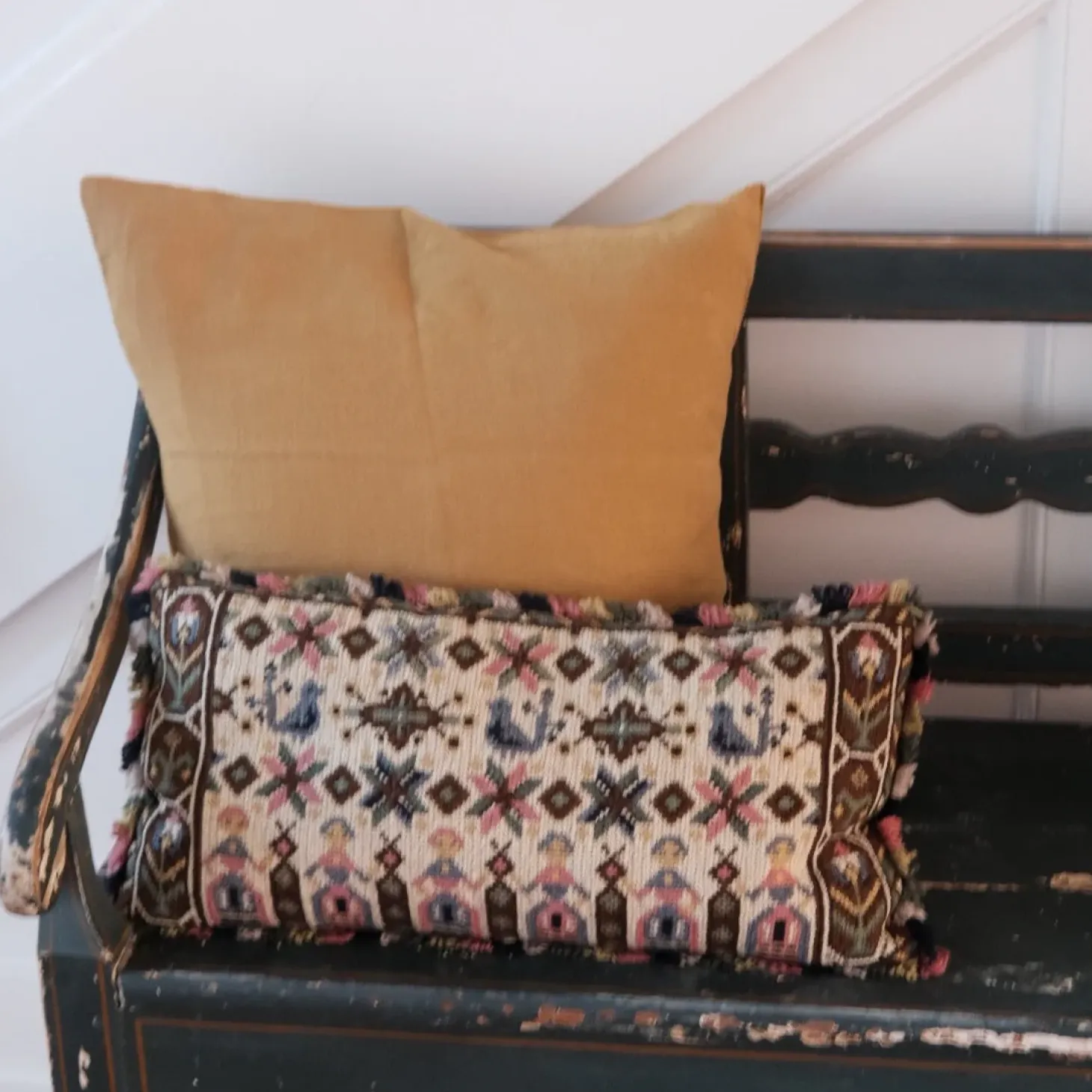 Vask: Vaskes ved 40 grader, og vi anbefaler lufttørring. Pudebetrækket kan stryges, men vi synes, det er flottere og mere ‘høragtigt’ uden strygning