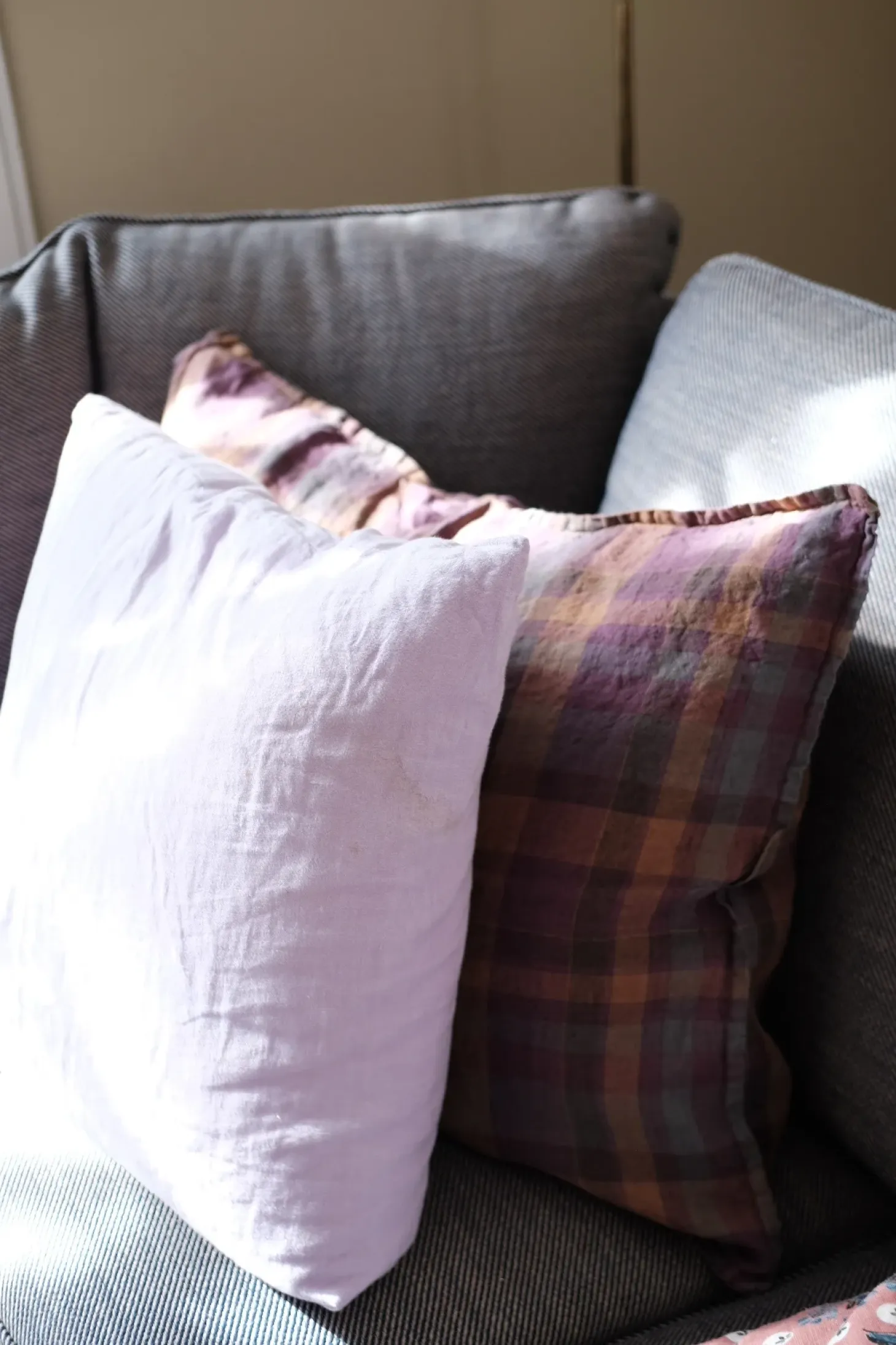 Pude i vasket hør i en glad stribet udgave fra franske Linge Particulier. De kan virkelig noget med farver – de er særligt dybe og flotte.