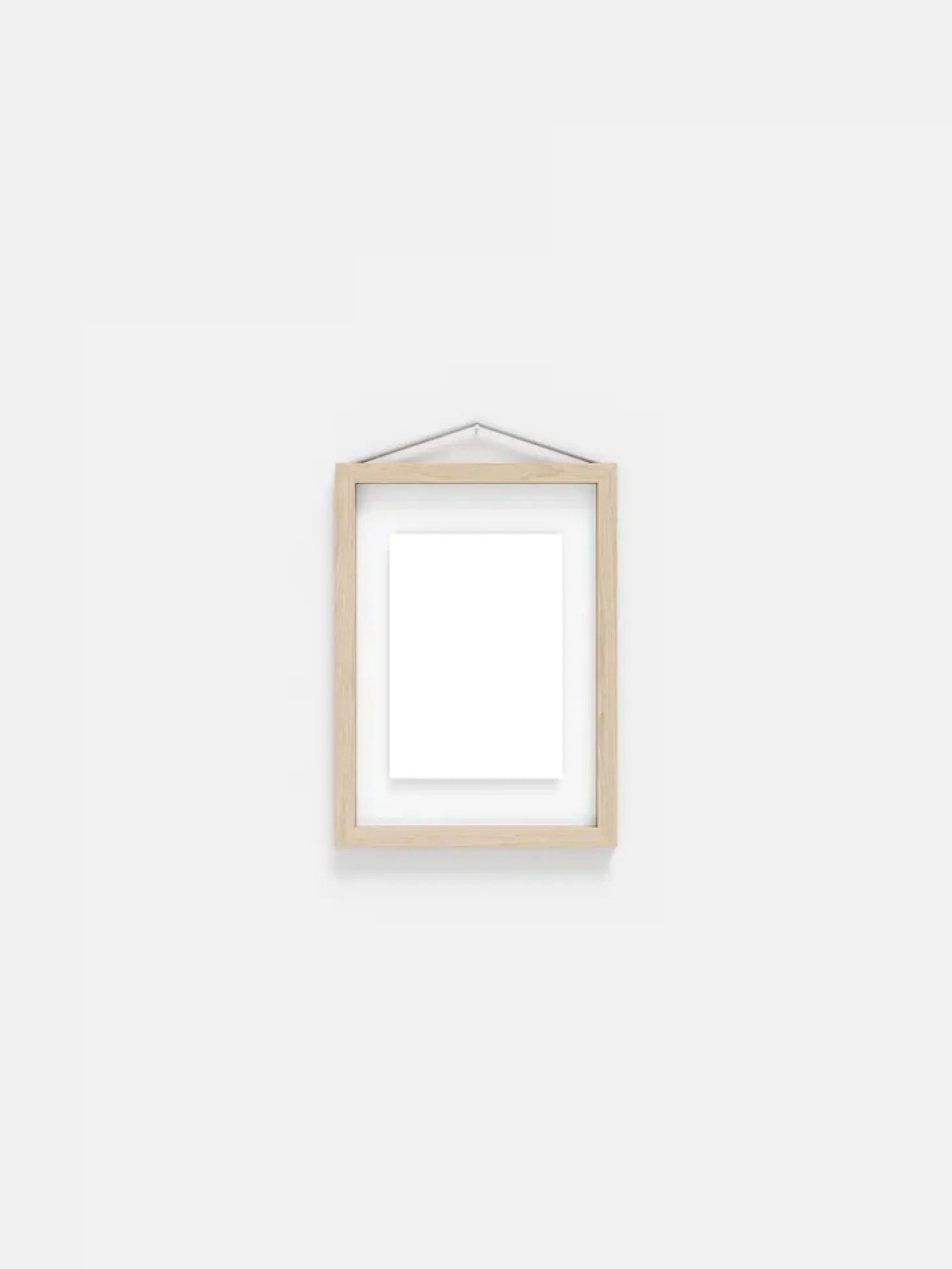 Rigtig fin ramme i asktræ med plexiglas. Rammen holdes sammen af en elastik, så man kan kalde det en moderne skifteramme. Elastikken gør det nemt at skifte billedet og fungerer samtidig som ophæng, mega smart.