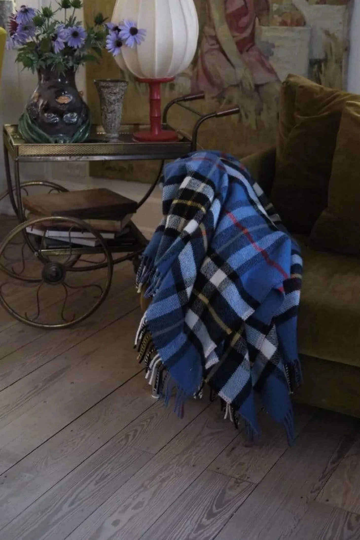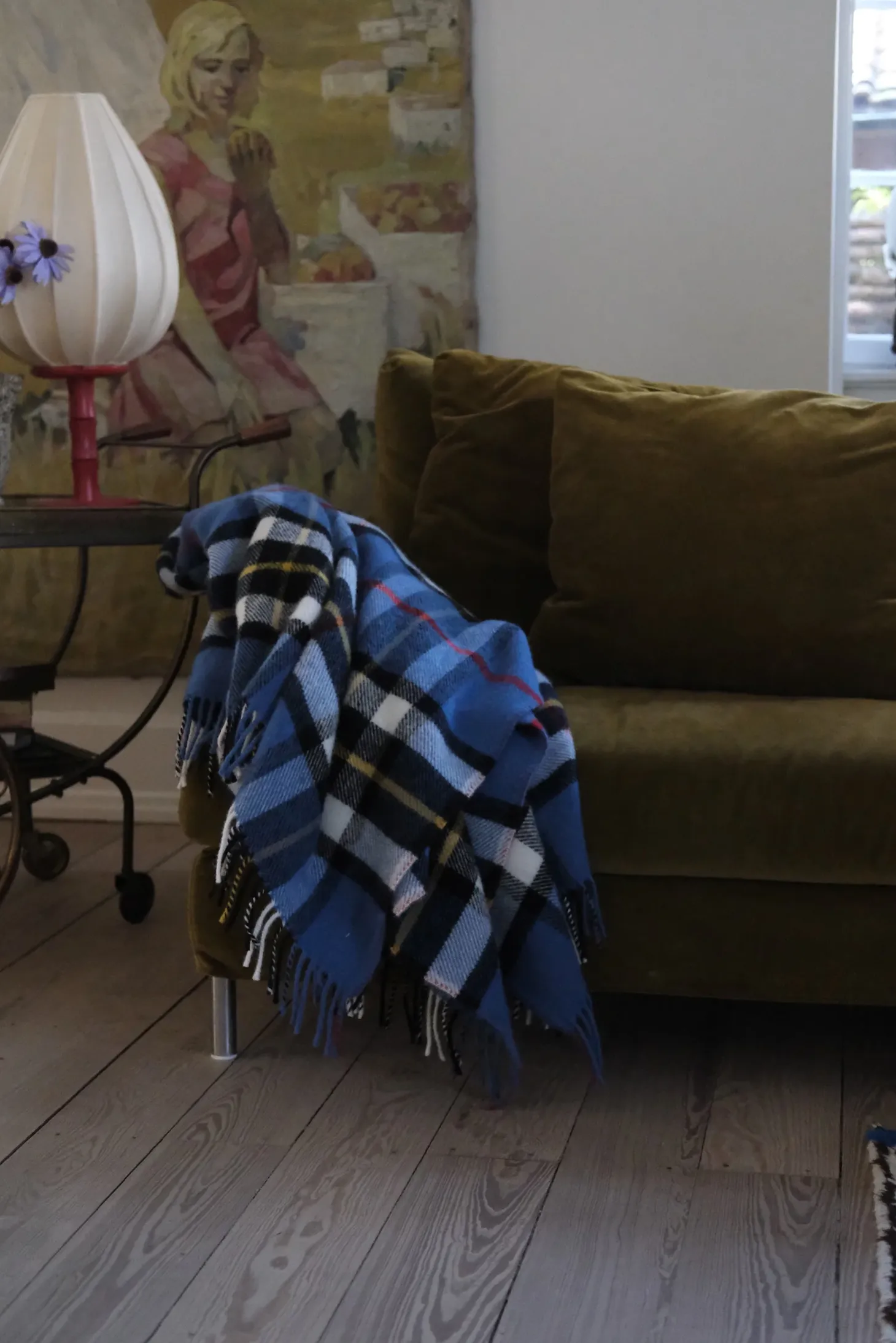 Lækkert og klassisk uldtæppe – model Tartan Rug – fra det britiske firma Tweedmill i blå tern. Plaiden er dejligt blød og varm og perfekt til ekstra hygge i stuen eller i soveværelset. Og så er tæppet også både holdbart og skønt at bruge udendørs. Jeg bruger i øvrigt også uldtæppet som sengetæppe til min yngste i børneværelset …