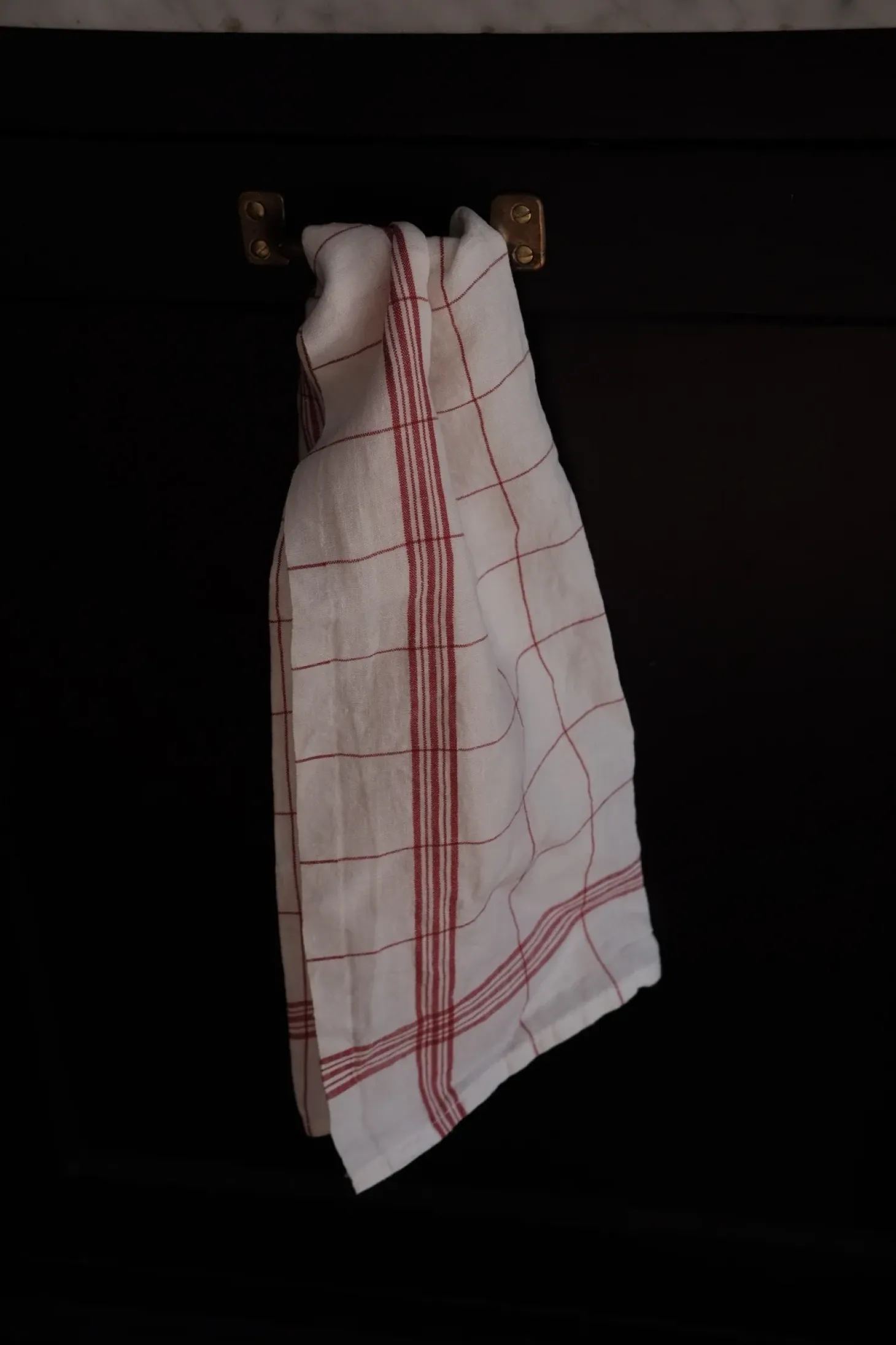 Viskestykke • Torchon Bistrot • Hvid med Røde tern