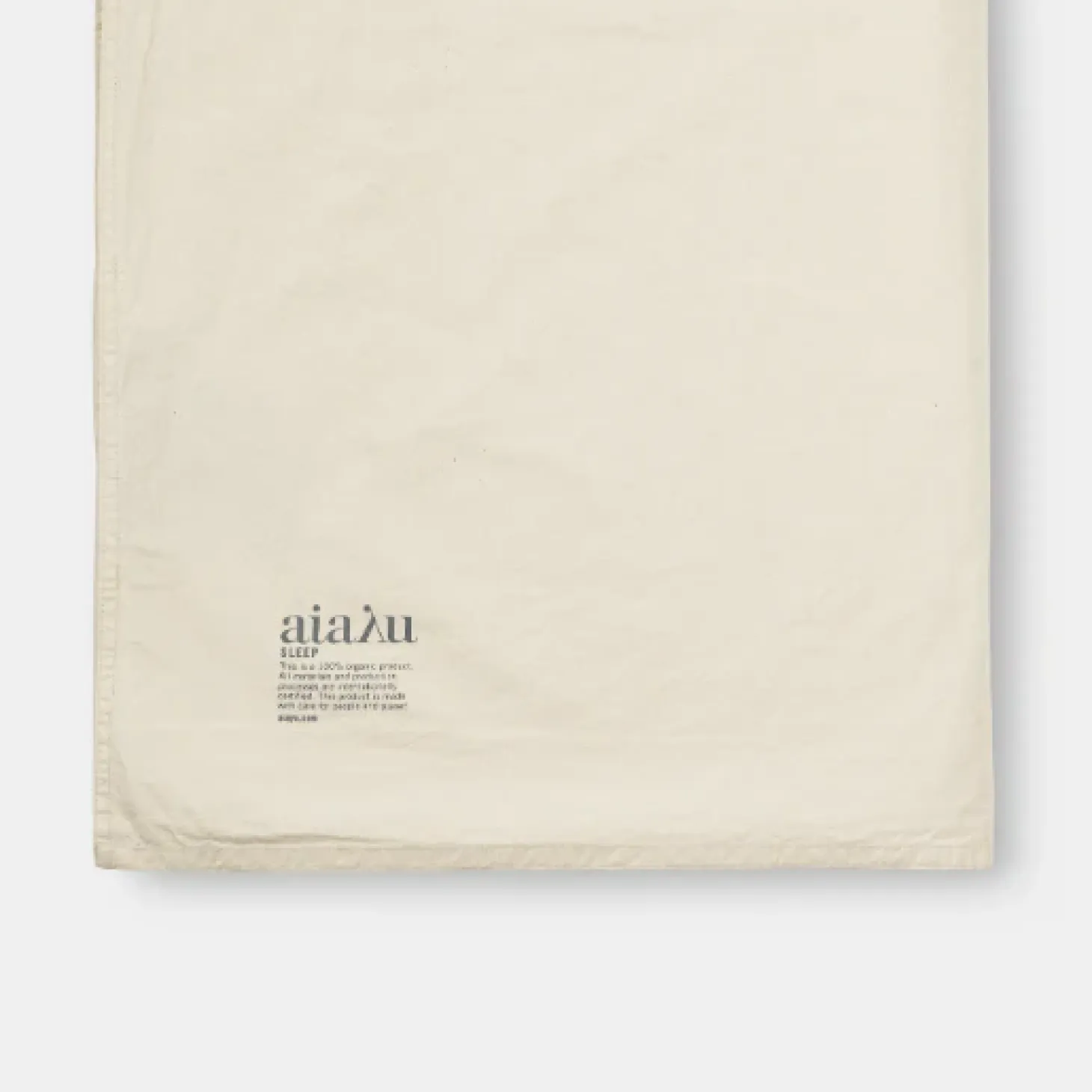 Et lyst cremefarvet lagen i 100% økologisk bomuld. Sov formidabelt i kvaliteten fra danske Aiayu.