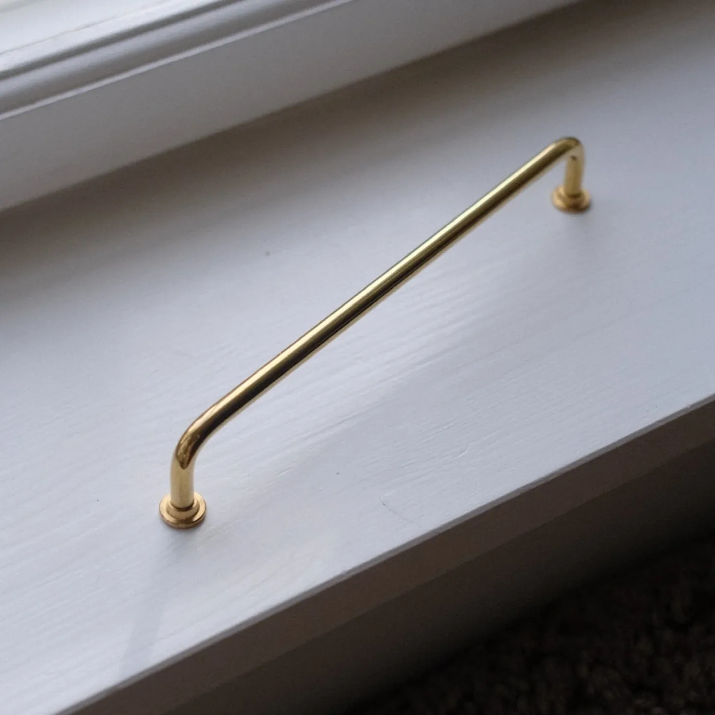 Super fine bøjlegreb i ulakeret messing med trappet fodskive, hvilket tilføjer elegance til det klassiske greb.
