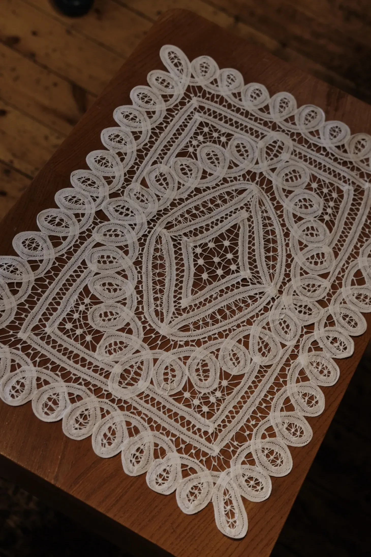 En dækkeserviet i kniplet bomuld. Ej men, se dem lige! Er de ikke bare helt vildt bedårende. Vi er hensat til sydeuropa med det samme og synes de er skønne ind i den nordiske mere minimalistiske indretning. Dækkeservietten er selvfølgelig primært til din borddækning, men vi synes den er smuk mange steder, som underlag.