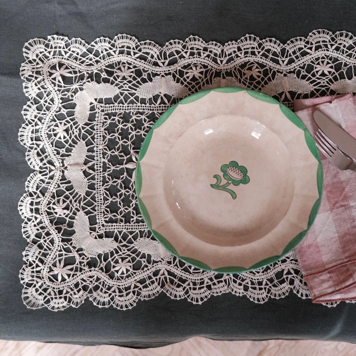 En dækkeserviet i kniplet bomuld. Ej men, se dem lige! Er de ikke bare helt vildt bedårende. Vi er hensat til sydeuropa med det samme og synes de er skønne ind i den nordiske mere minimalistiske indretning. Dækkeservietten er selvfølgelig primært til din borddækning, men vi synes den er smuk mange steder, som underlag.