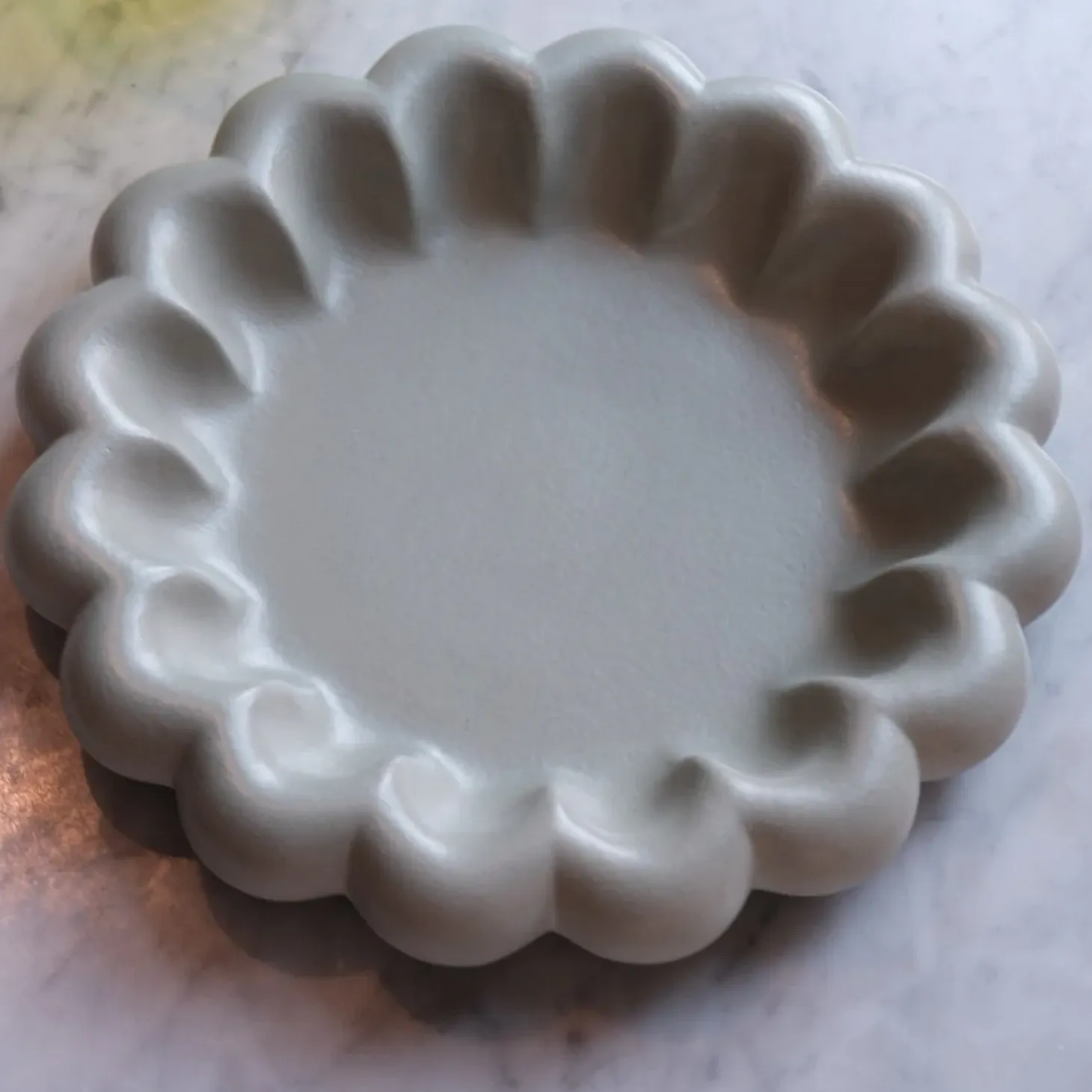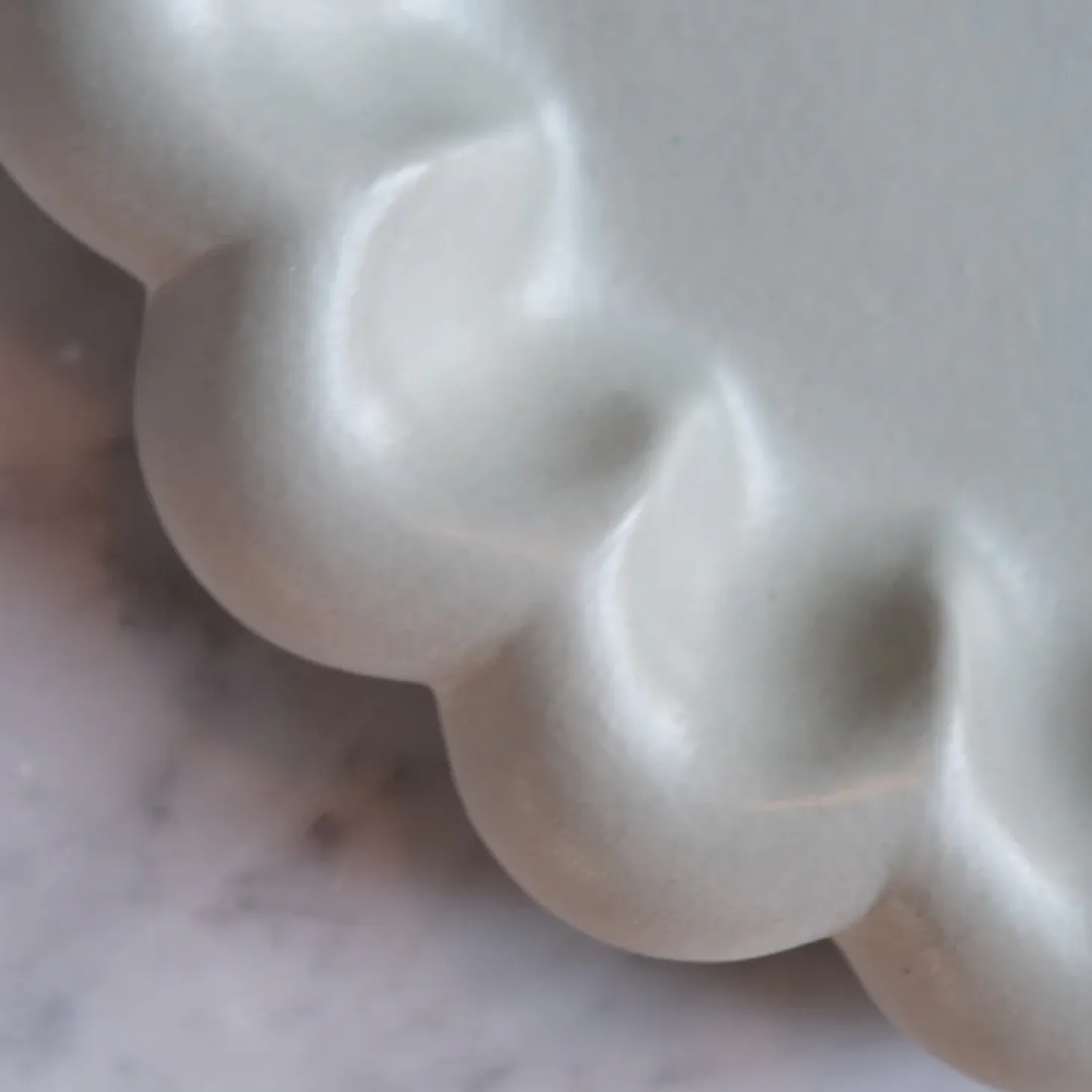 Stort fad i glaseret stentøj, der er formgivet med inspiration fra konditorkunsten… Ja, vi tænker på flødeskum! Nogle synes måske formen er blomster-lig.