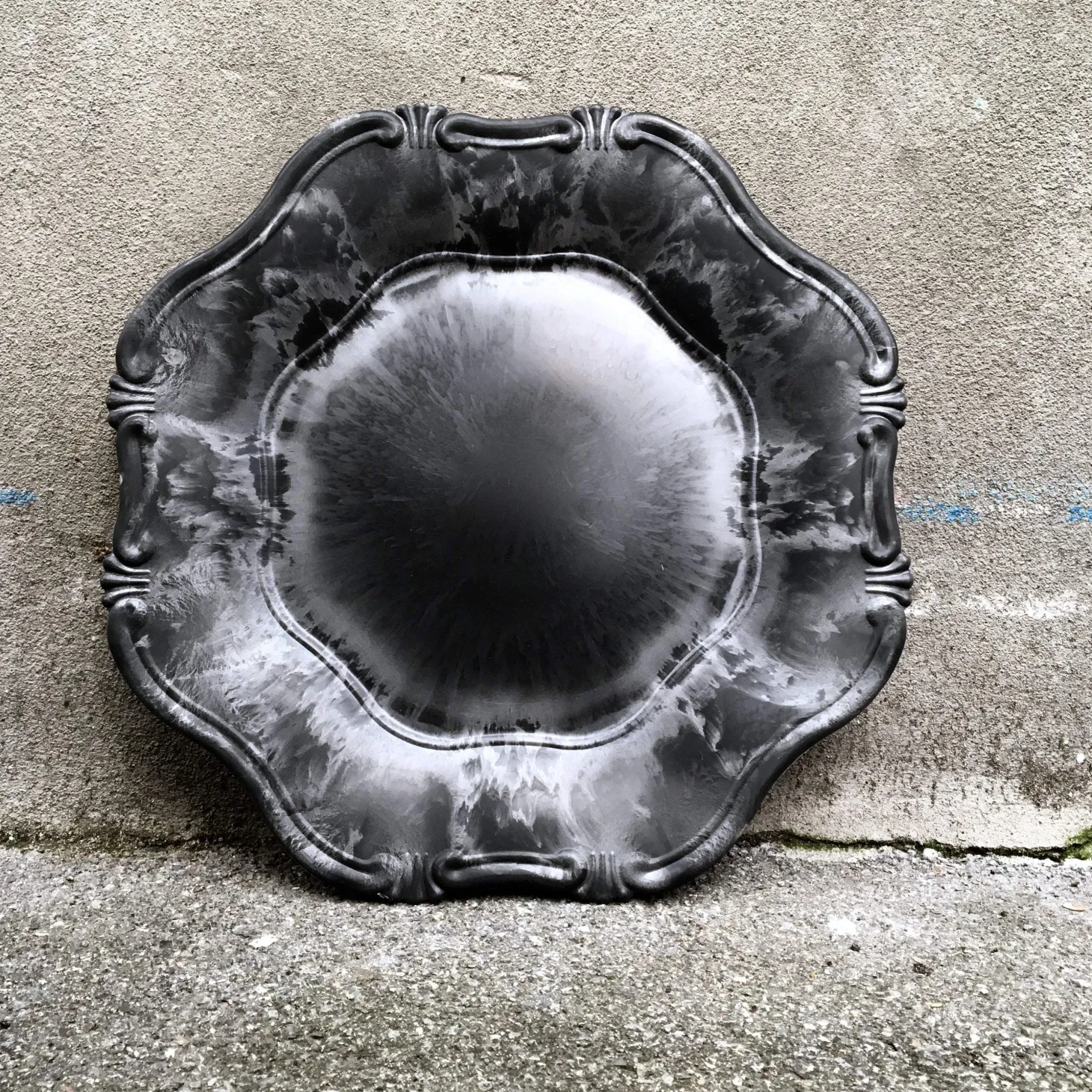 Den er lavet i genanvendt PP og måler Ø33 cm.Fadet / tallerkenen kommer i 2 varianter. Må ikke benyttes til madvare, men er skøn som undertallerken!