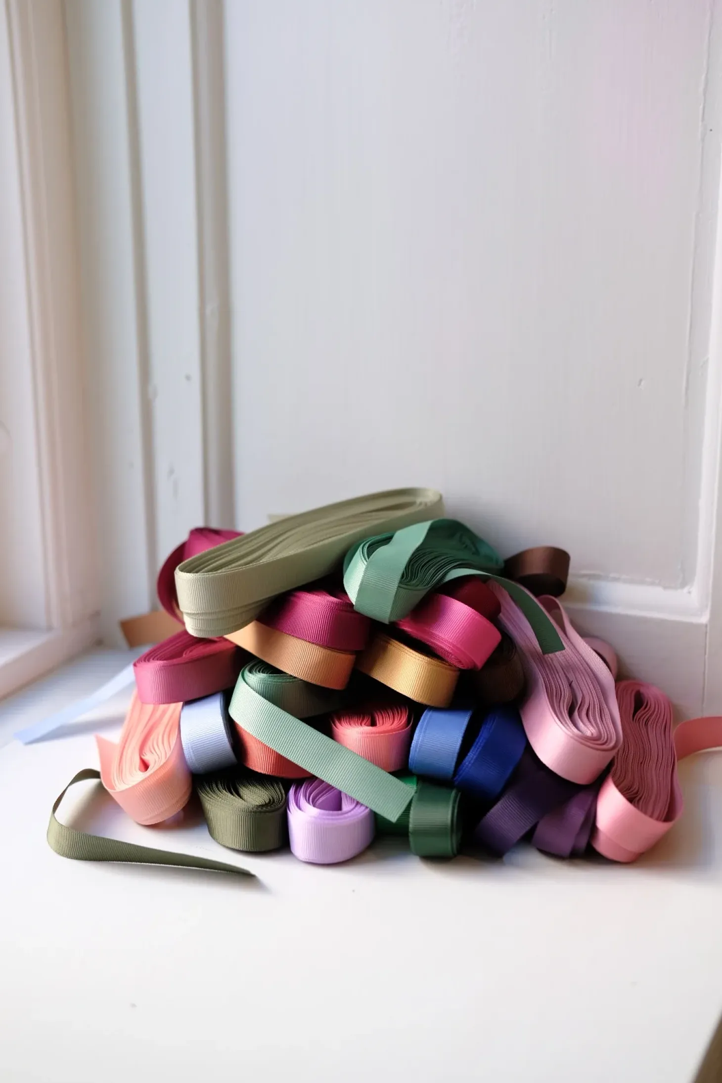Gavebånd i grosgratin bomuld med små riller i. De er alle nogle ret flotte farver. De kan bruges til at pakke gaver ind, men også hænge julepynt op i.