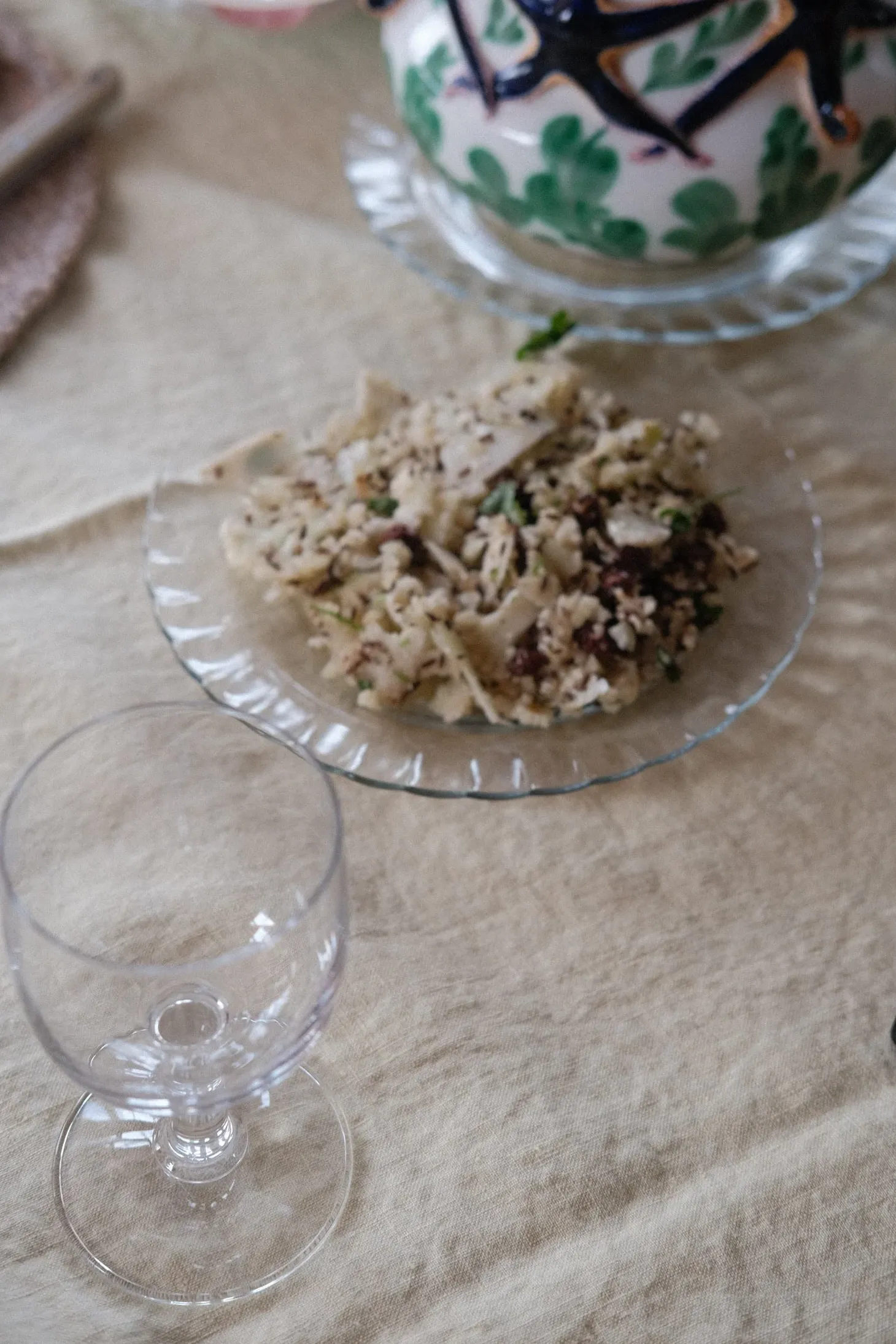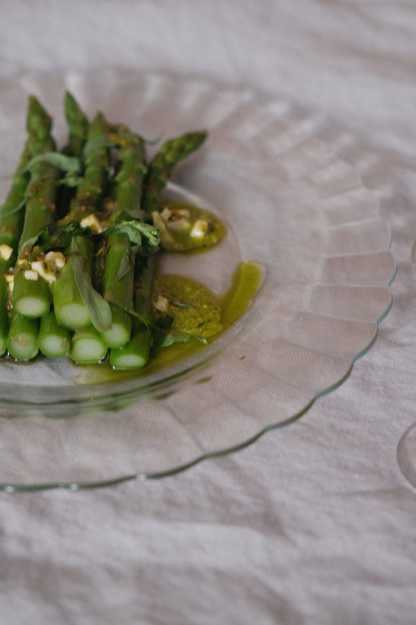 En glastallerken med en plisseret og enkel kant. Vi kan godt lide det simple og skrøbelige i en glastallerken, samtidig med at den er hærdet glas så den kan tåle meget. Vi vil bruge den til den daglige frokost.