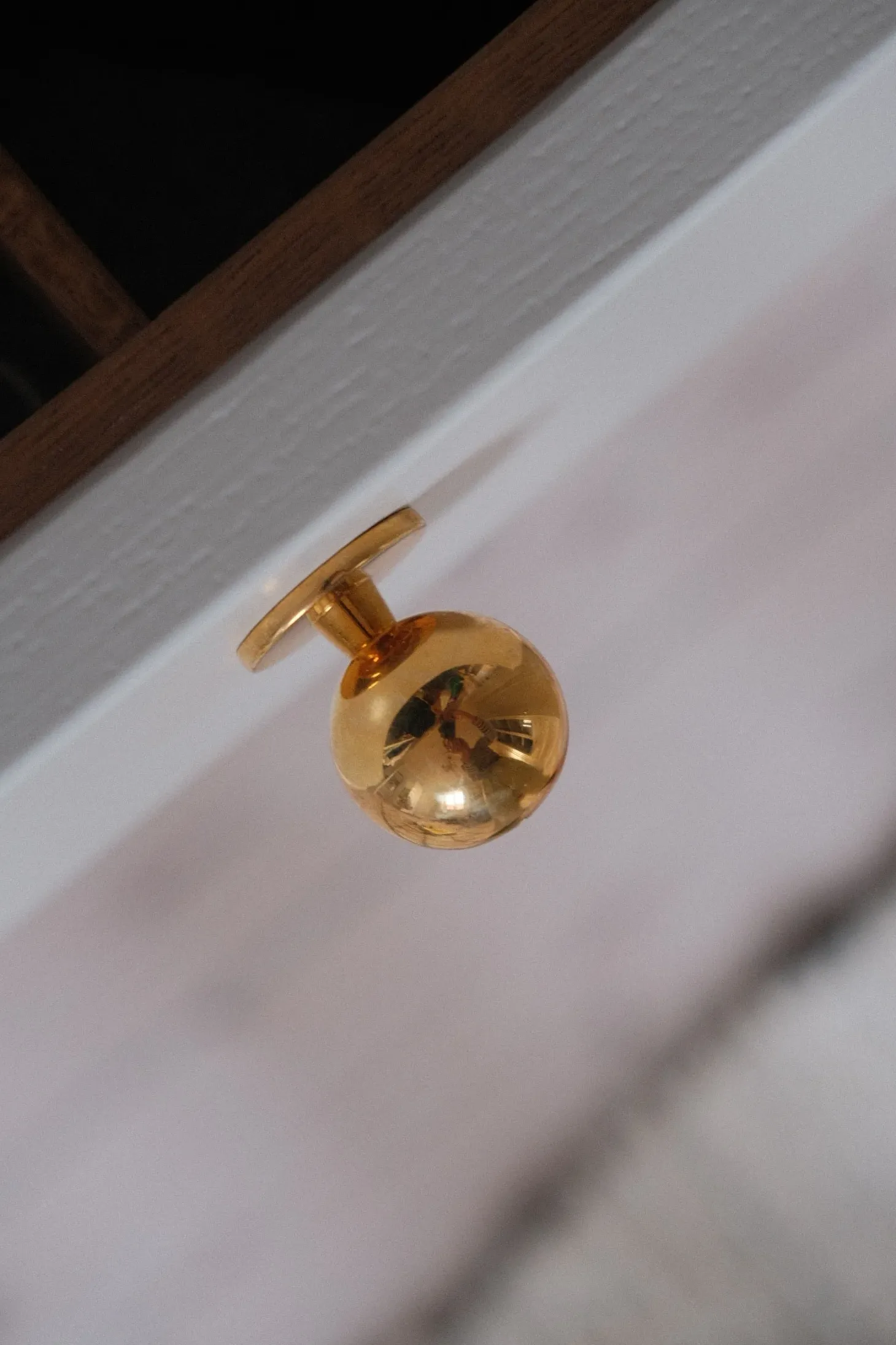 Enkel kuglerund knage / greb med fod i messing uden lak.