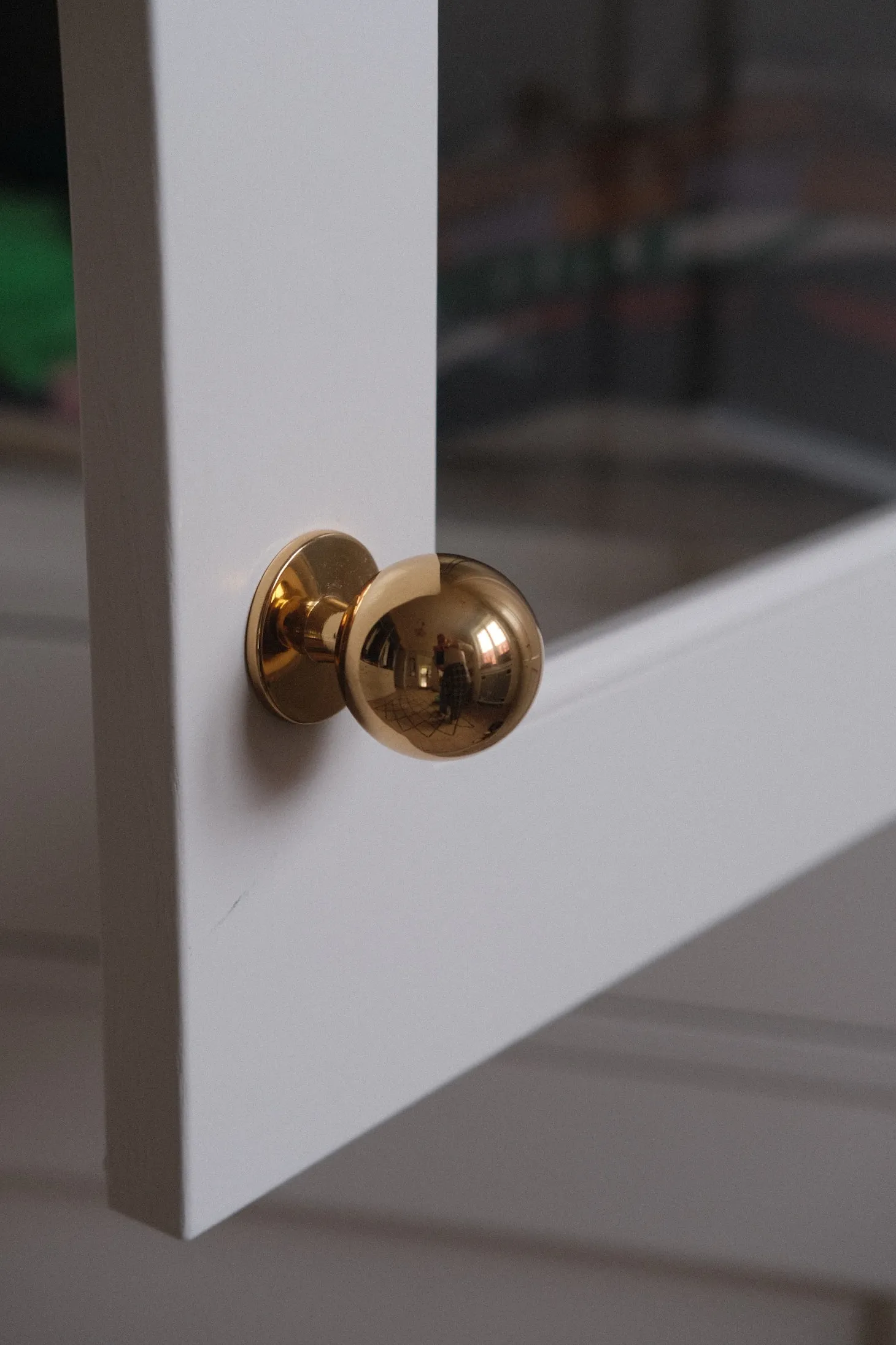 Enkel kuglerund knage / greb med fod i messing uden lak.