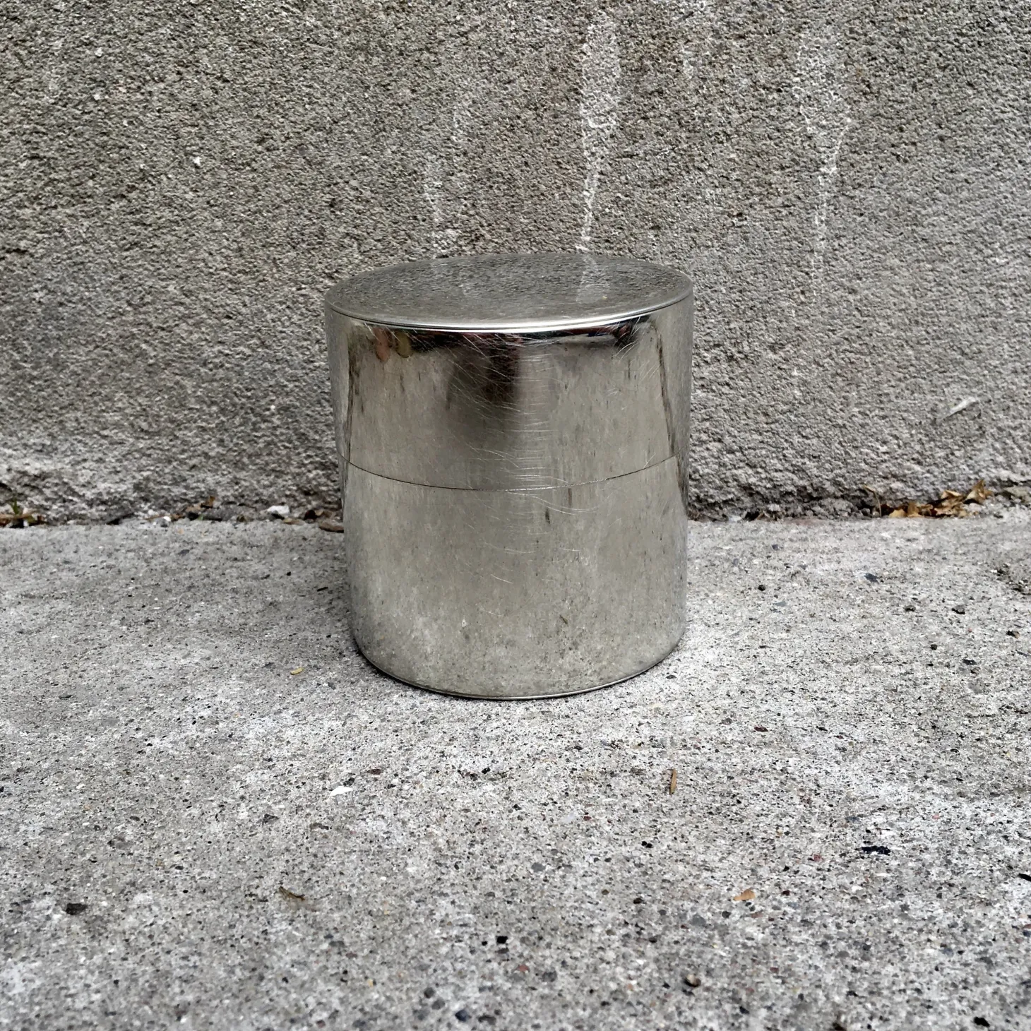 Super smuk håndlavet dåse i tin og med et ekstra lille låg indeni, som holder ekstra tæt. God at have stående – til småting. Vi bruger vores til teblade og neskaffe.
