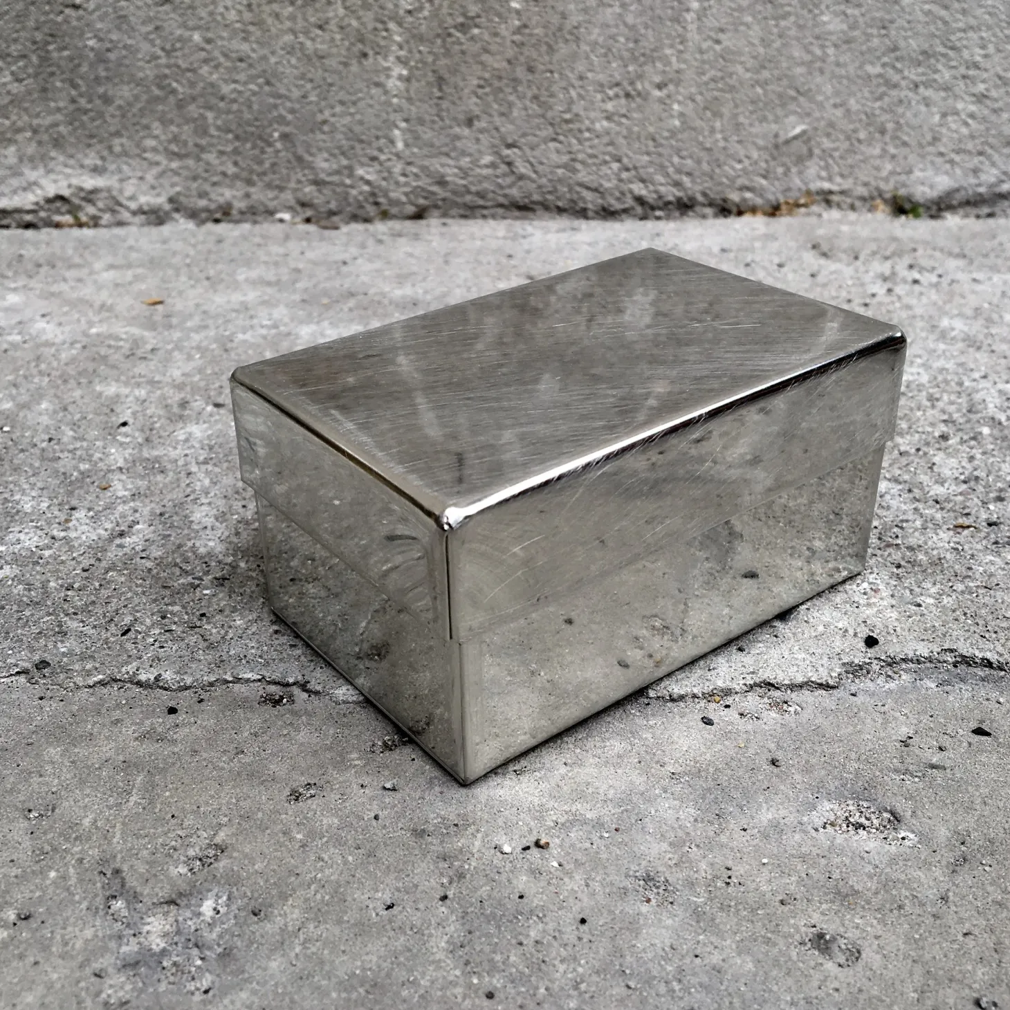 Fin lille håndlavet æske i tin. Smuk at have stående – til småting, knapper, karameller – alle de ting, man gerne vil gemme væk, men alligevel have ved hånden.