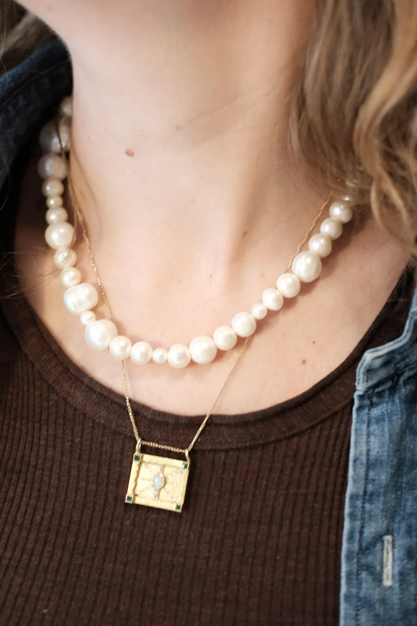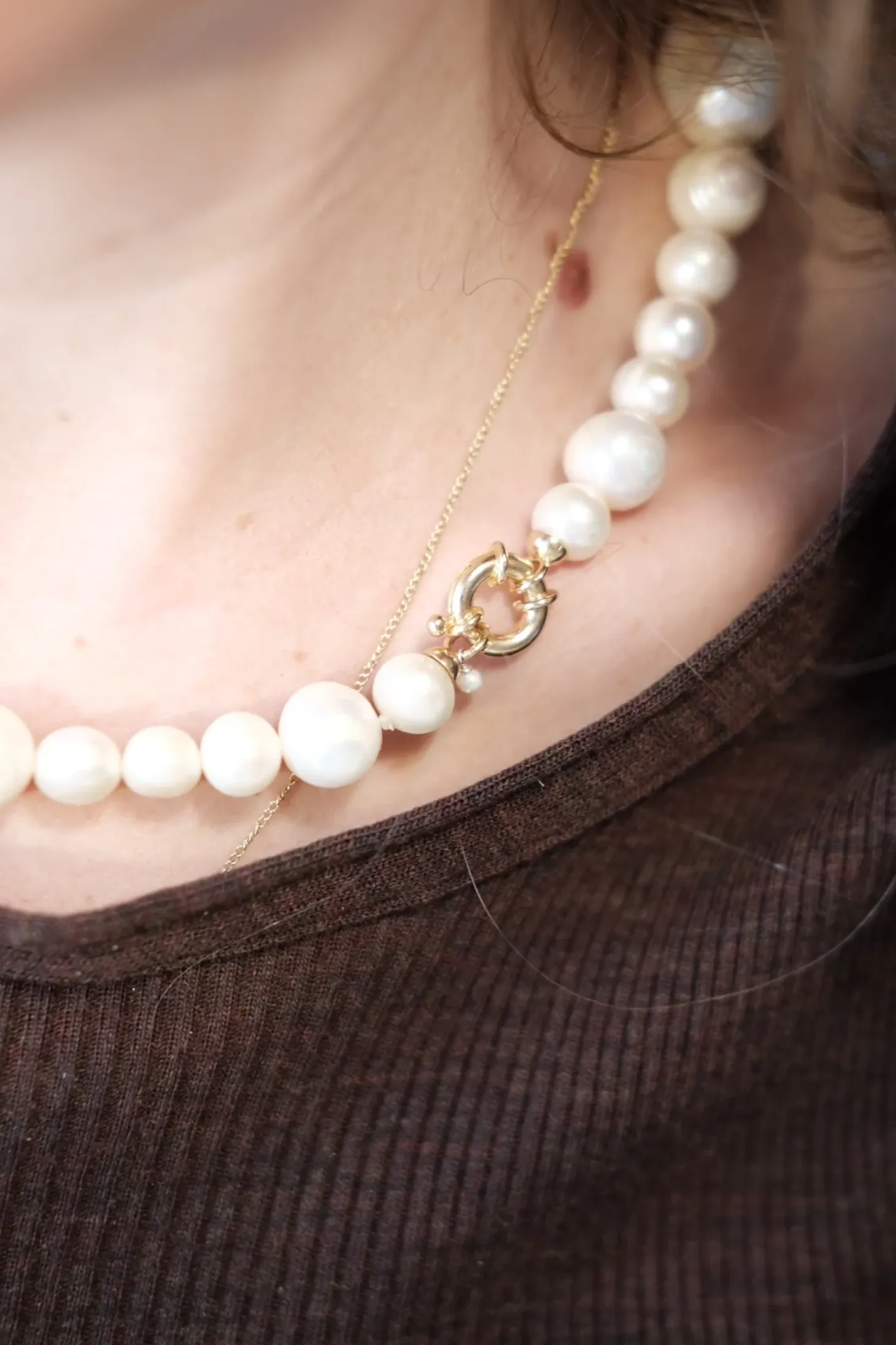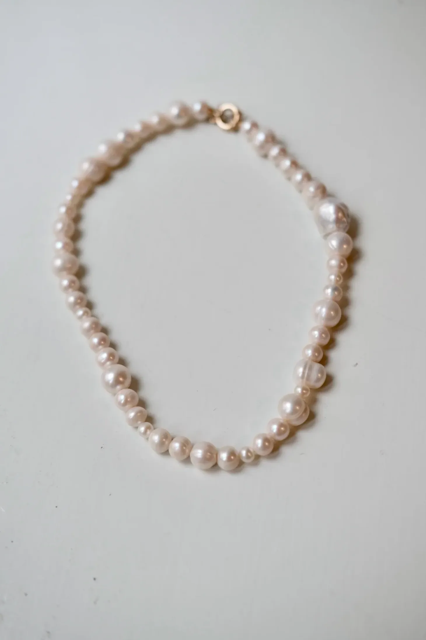 En elegant halskæde lavet i højkvalitets ferskvandsperler. De naturligt skabte sten skaber det helt rigtige udtryk, hvis du spørger os. Vi synes den har karakter og er super cool til alt fra en t-shirt til den festlige garderobe.Smykkerne er håndlavet i Holland af et lille team på Labros atelier.
