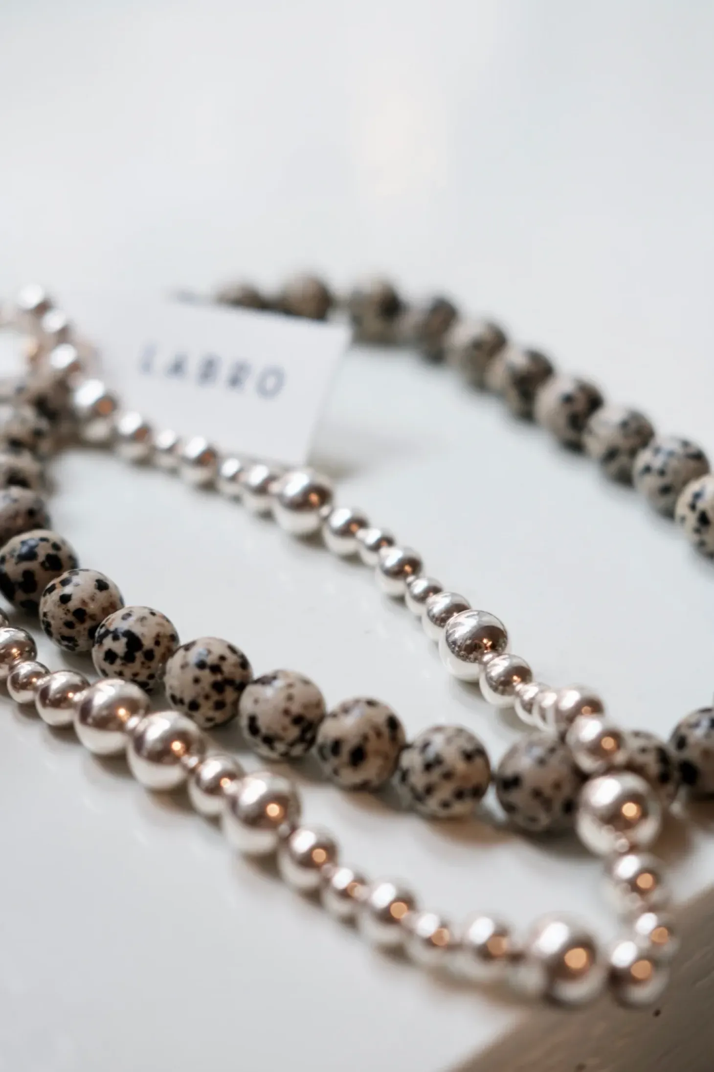 En sej halskæde lavet i høj kvalitet i sterling sølv. De varierende størrelse perler skaber det helt rigtige udtryk, hvis du spørger os. Vi synes den har karakter og er super cool til alt fra en t-shirt til den festlige garderobe.Smykkerne er håndlavet i Holland af et lille team på Labros atelier.