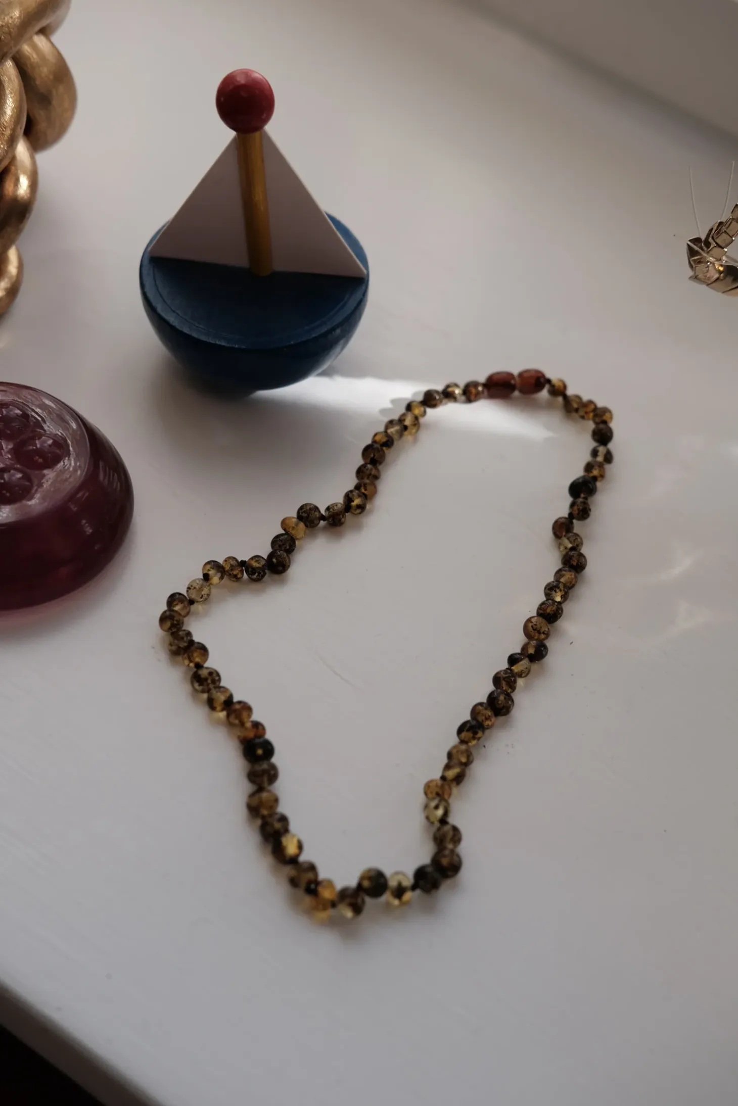 Halskæde i en mørk og skinnende grøn ravperle. Smuk til gylden sommerhud!Med danske Nirrimis kæder er vi klar til sommerlandet!
