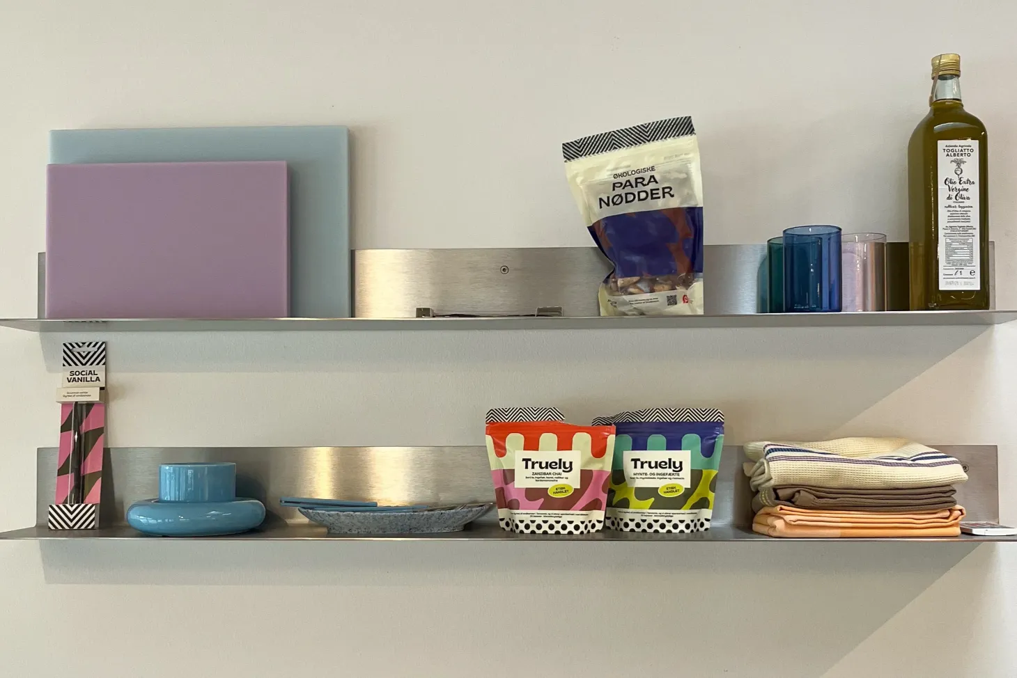 En hylde til væggen der kan placeres både i stue, køkken og badeværelse. Elegant og god i størrelsen.